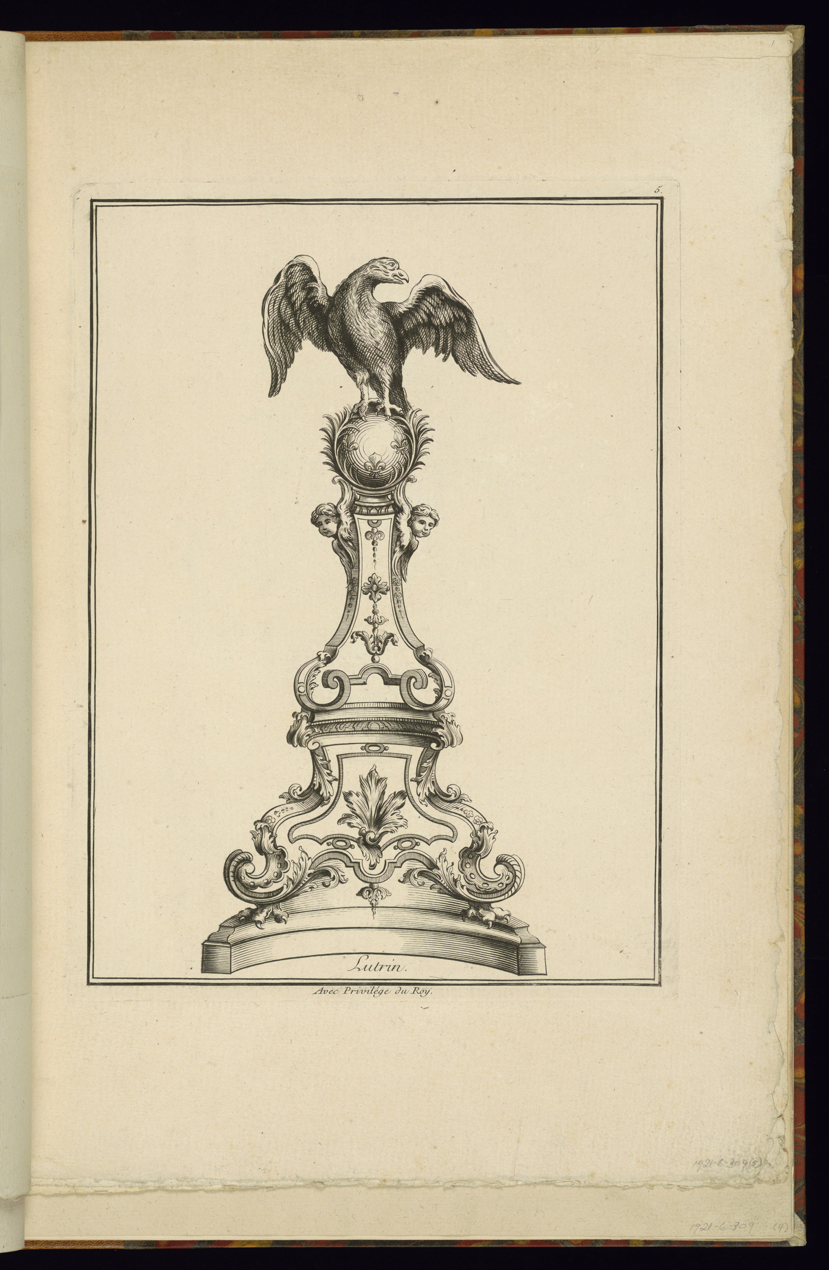 Numbered in plate, upper right: 5; lettered lower center: Lutrin / Avec Privilége du Roy; inscribed in graphite lower right margin: 1921-6-309(5)