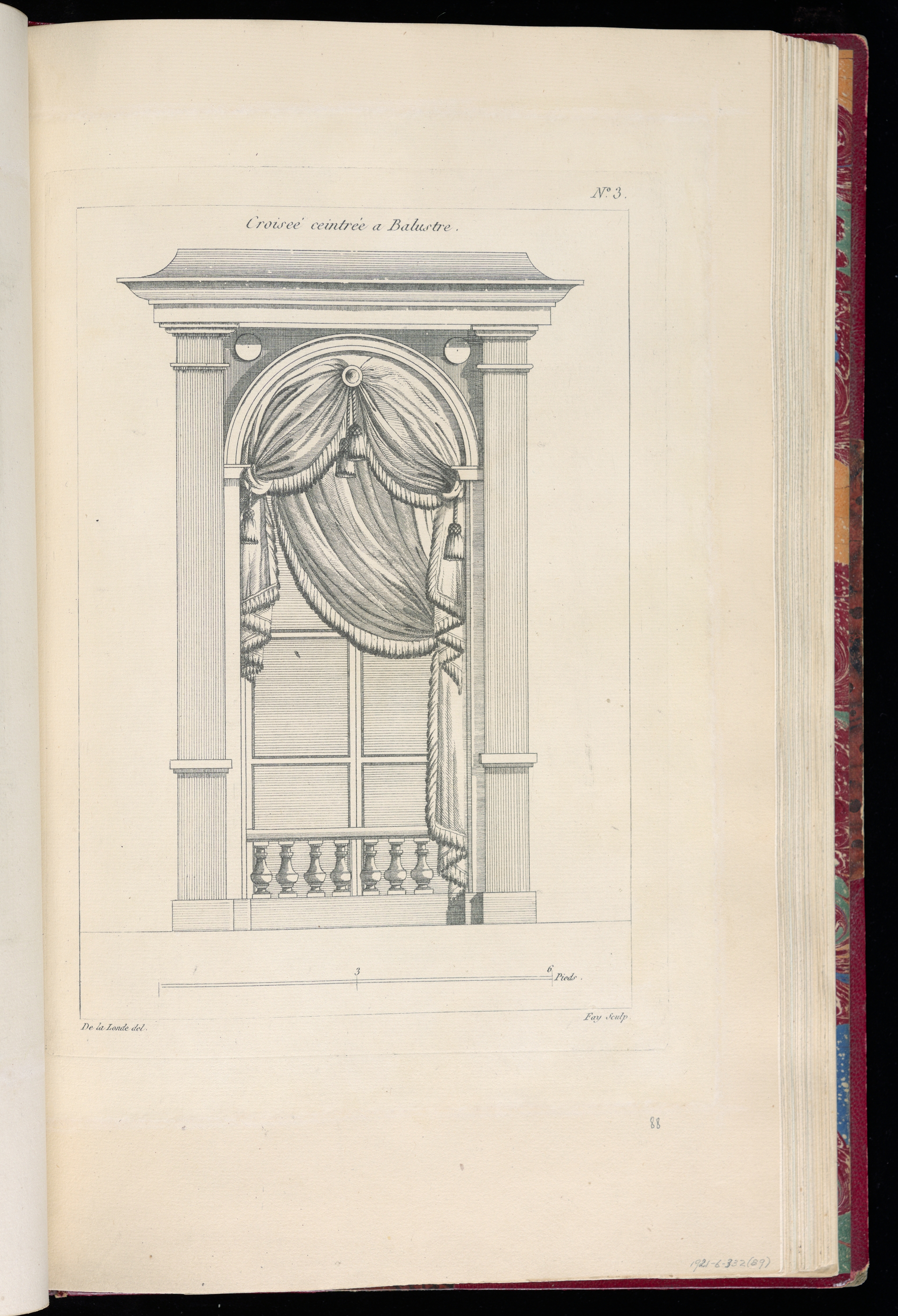 Printed upper center, in plate: Croisée Ceintrée à Balustre; Printed upper right, in plate: No. 3; Inscribed in graphite, lower right, in maring: 88 / 1921-6-332 (89)