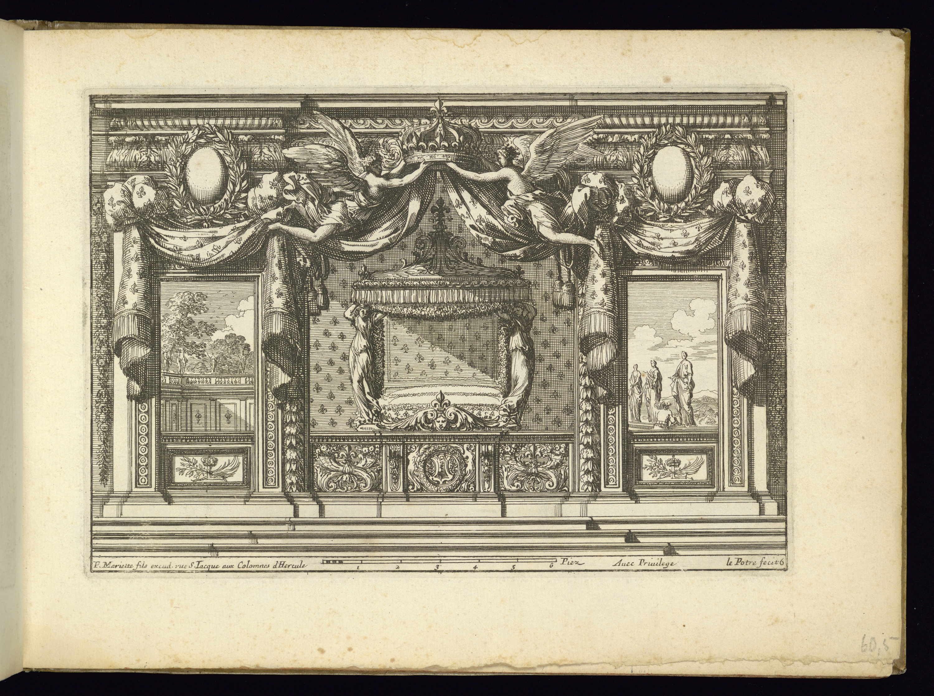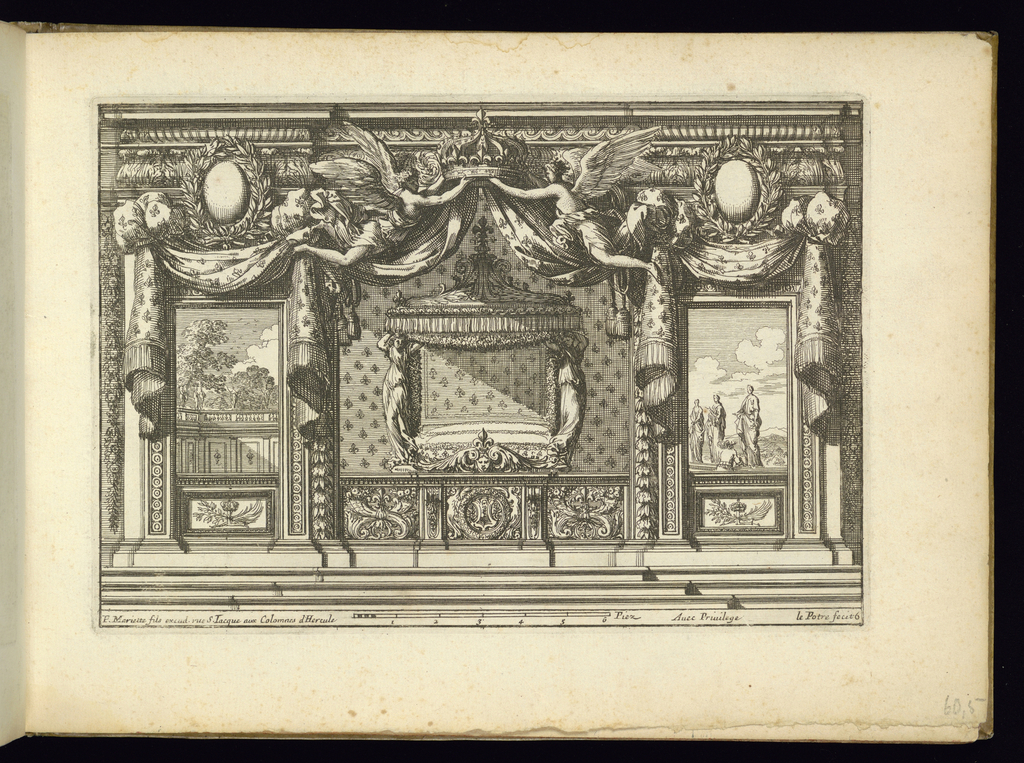 Print, Royal Alcove; Designed by Jean Le Pautre (French, 1618–1682); Published by Pierre Mariette II (French, 1634 - 1716); France; etching on laid paper; Sheet: 19 × 26.4 cm (7 1/2 × 10 3/8 in.) Platemark: 14.6 × 21.2 cm (5 3/4 × 8 3/8 in.) Image: 14.3 × 20.8 cm (5 5/8 × 8 3/16 in.); Purchased for the Museum by the Advisory Council; 1921-6-341-24