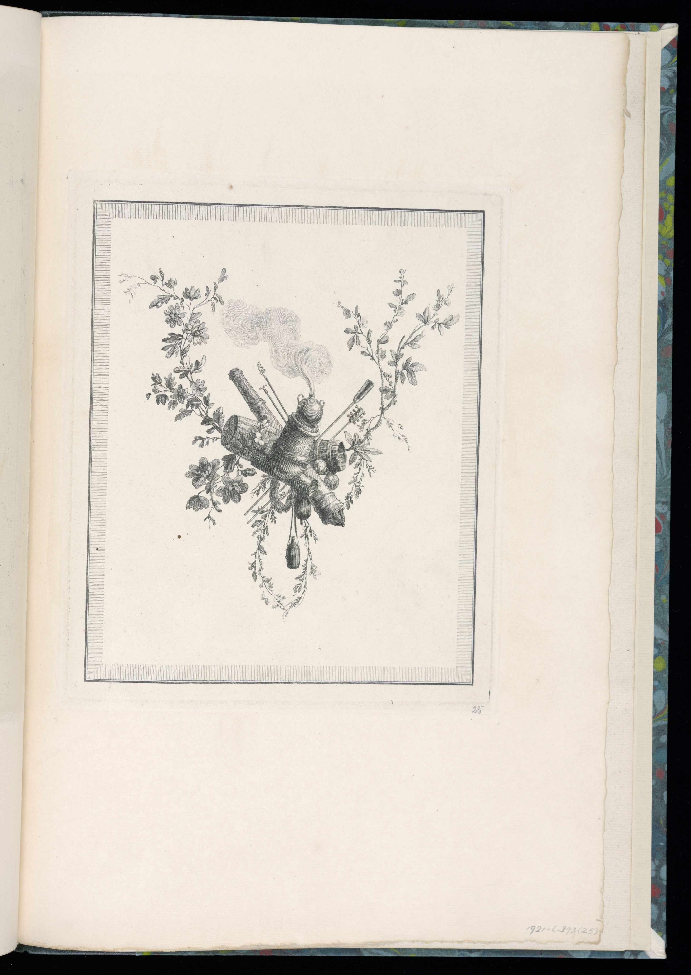 Print, Ornamental Trophy Design; Designed by Pierre Ranson (French, 1736–1786); Published by Louis-Joseph Mondhare (French, 1734–1799); etching and engraving on laid paper; Purchased for the Museum by the Advisory Council; 1921-6-393-25