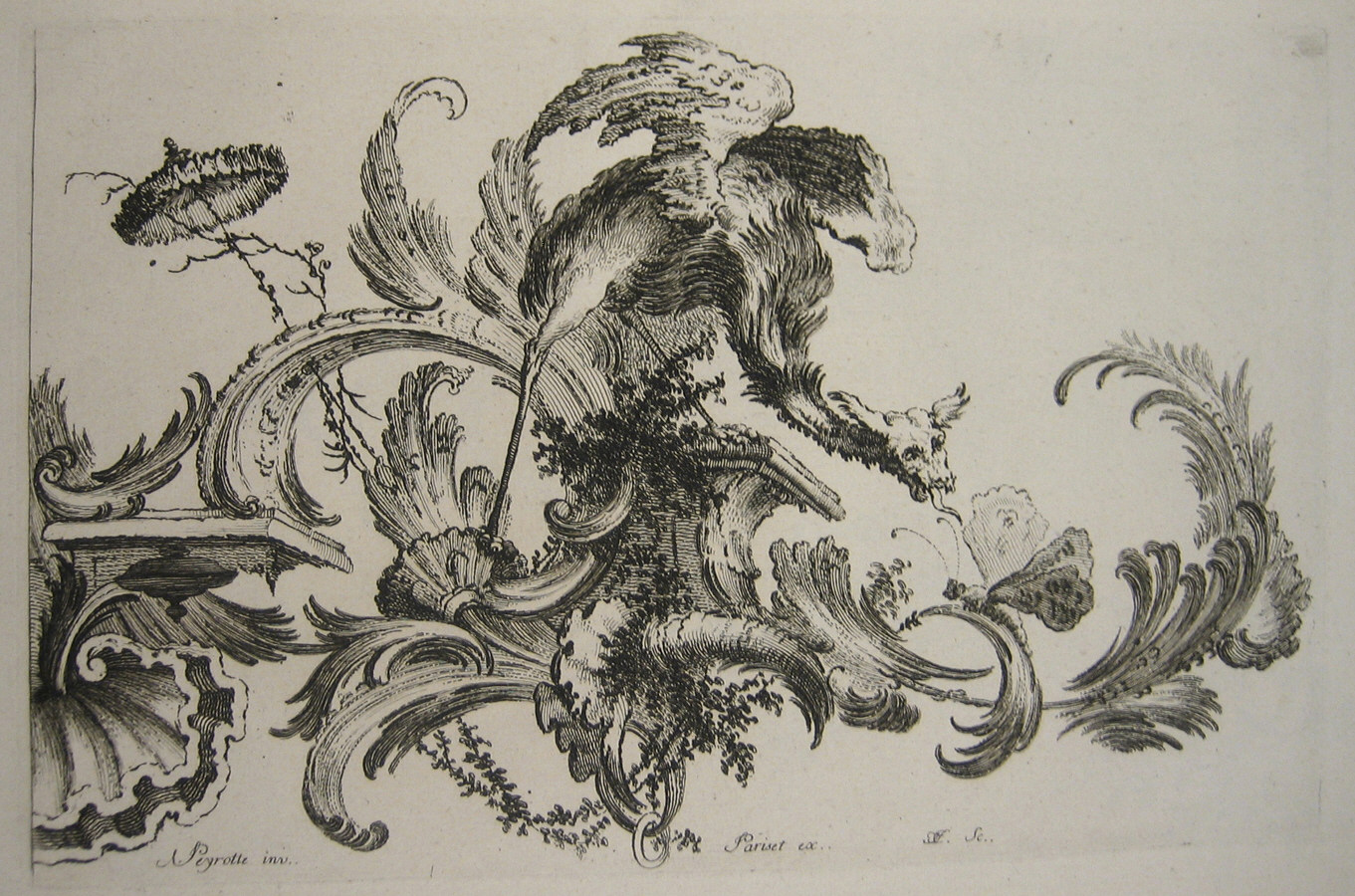 This is a Print. It was designed by Alexis Peyrotte and published by Robert Menge Pariset and print maker: Jean-Charles François. It is dated 1740–49 and we acquired it in 1920. Its medium is etching on laid paper. It is a part of the Drawings, Prints, and Graphic Design department.