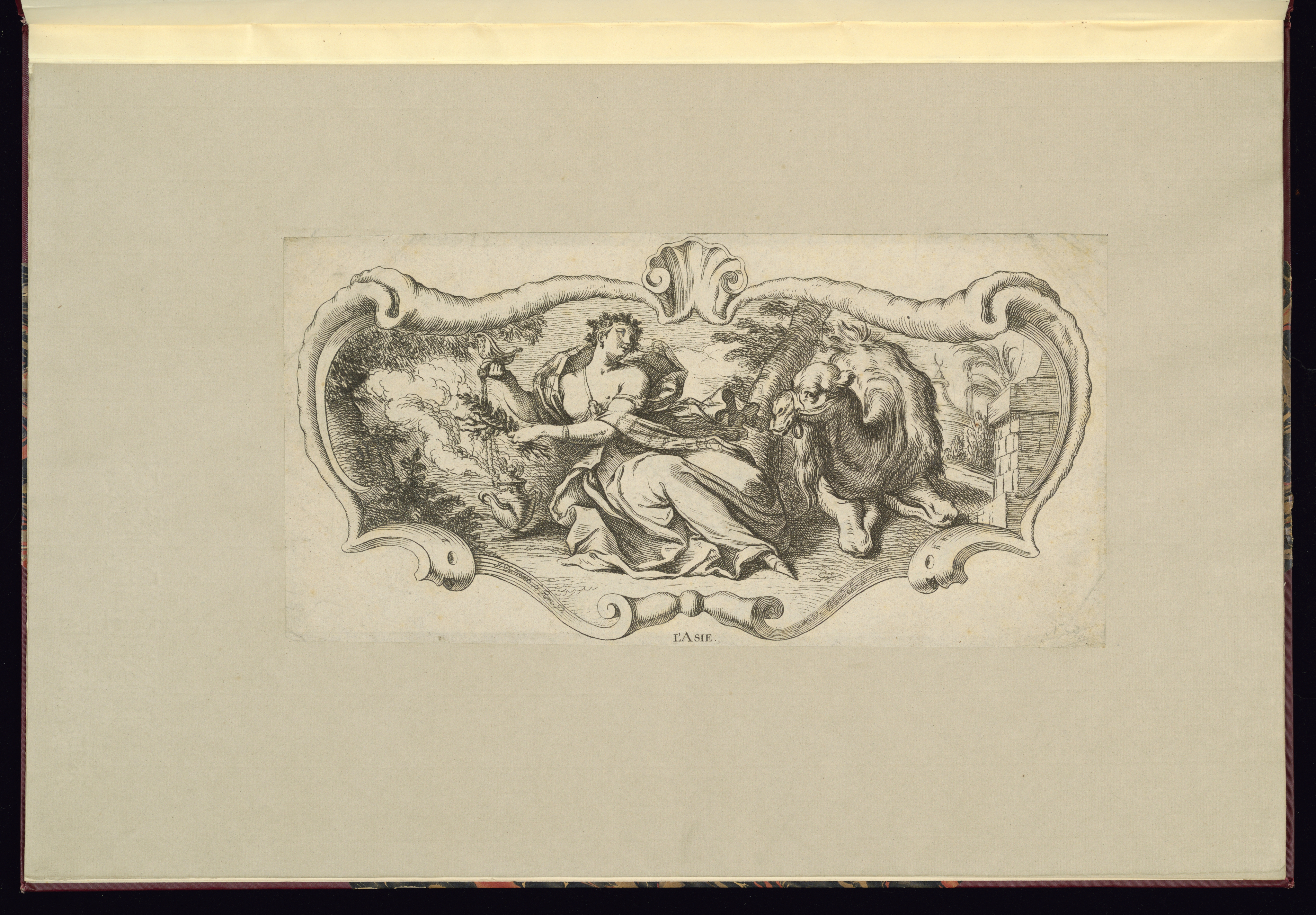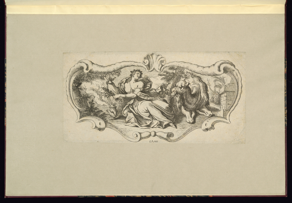 Print, L'Asie; Print Maker: Marie Michelle Blondel (French, active mid 18th century); After Jacques Dumont (French); Published by Mlle. Dobe (Active in France, eighteenth century); France; etching on paper; Purchased for the Museum by the Advisory Council; 1921-6-447-2