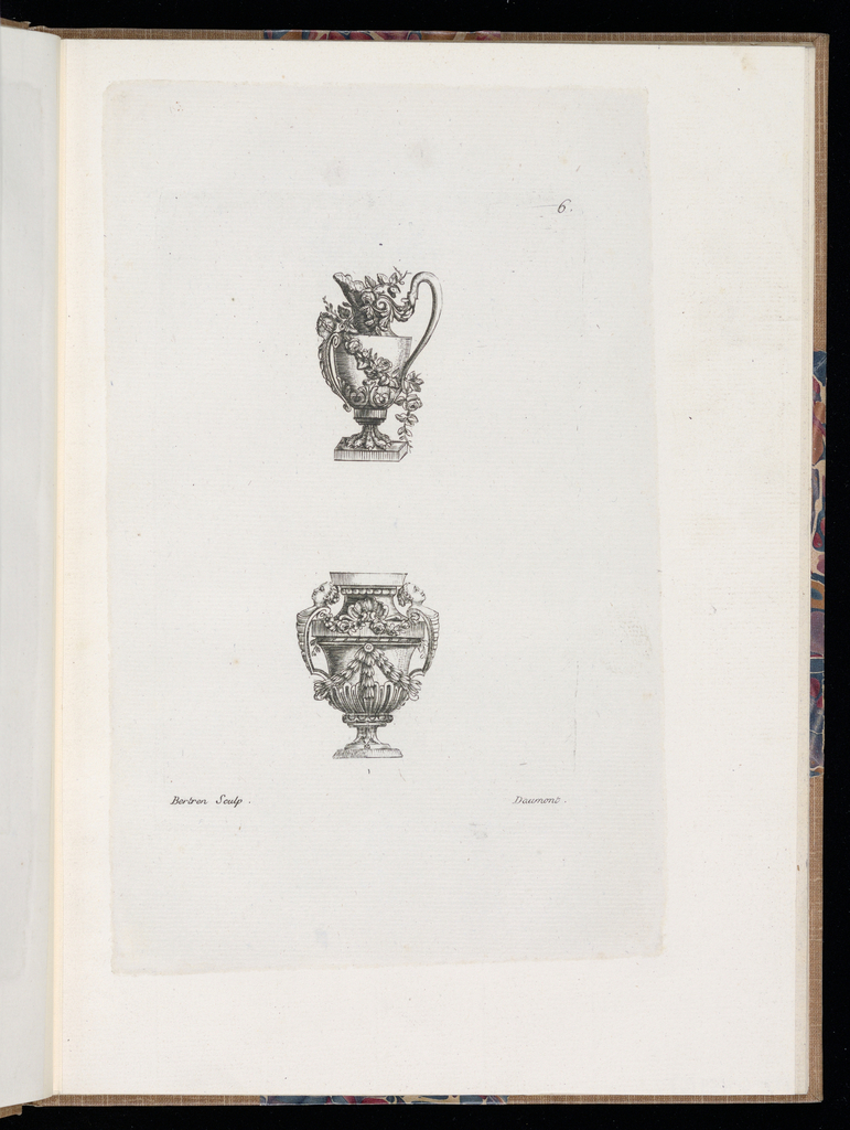 Print, Ornamental Vase Designs; Designed by Théodore Bertren (active in France, 18th century); Published by Chez Daumont; France; engraving on paper; Purchased for the Museum by the Advisory Council; 1921-6-458-6