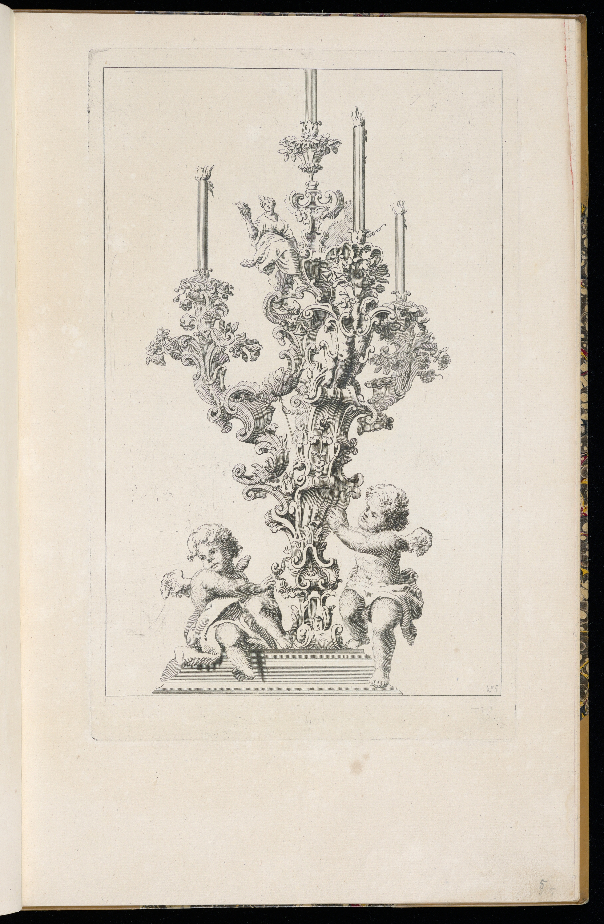 Print, Design for a Candelabra; Designed by Thomas Germain; Print Maker: B. Audran; France; etching on paper; Purchased for the Museum by the Advisory Council; 1921-6-464-5