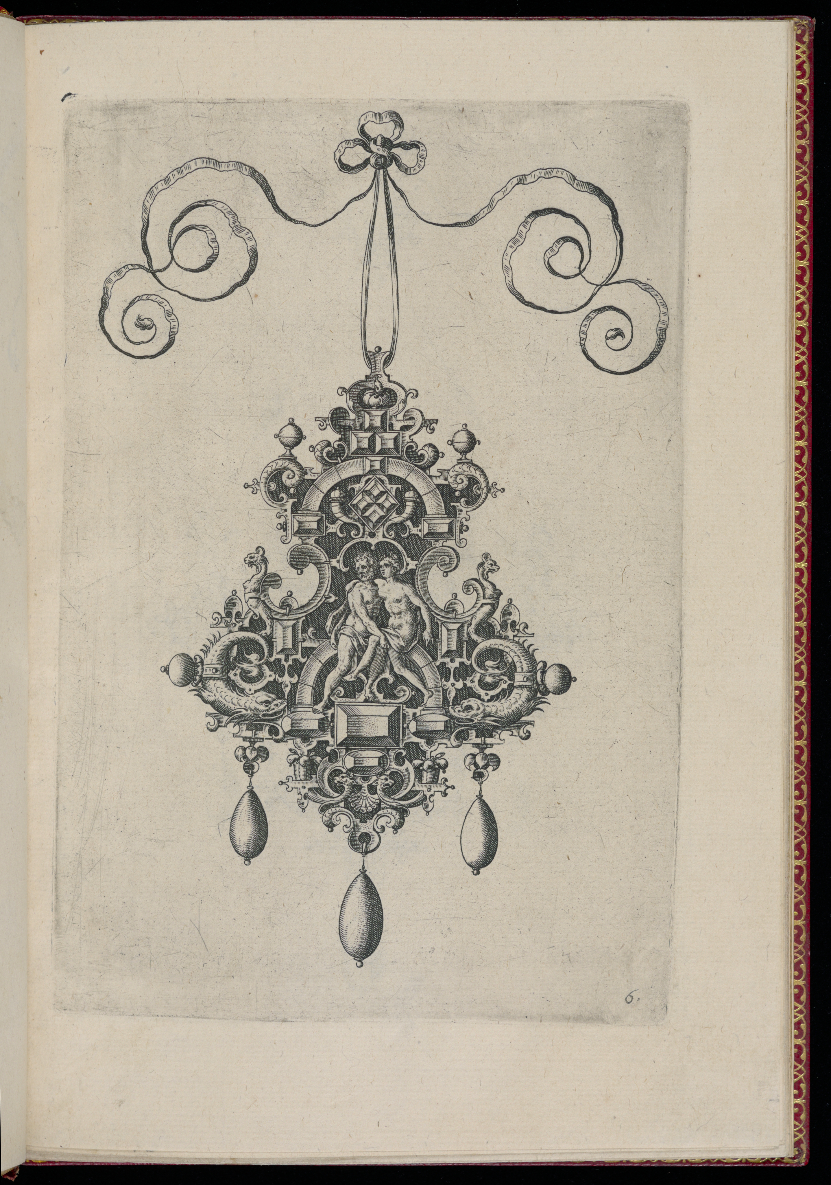 Print, Pendant Design; Designed by Hans Collaert the Elder (Flemish, ca. 1530 - 1581); Published by Philips Galle (Flemish, 1537 - 1612); Netherlands; engraving on paper; H x W: 21.1 × 14.4 cm (8 5/16 × 5 11/16 in.) Platemark: 17.1 × 11.5 cm (6 3/4 × 4 1/2 in.); Purchased for the Museum by the Advisory Council; 1921-6-469-6