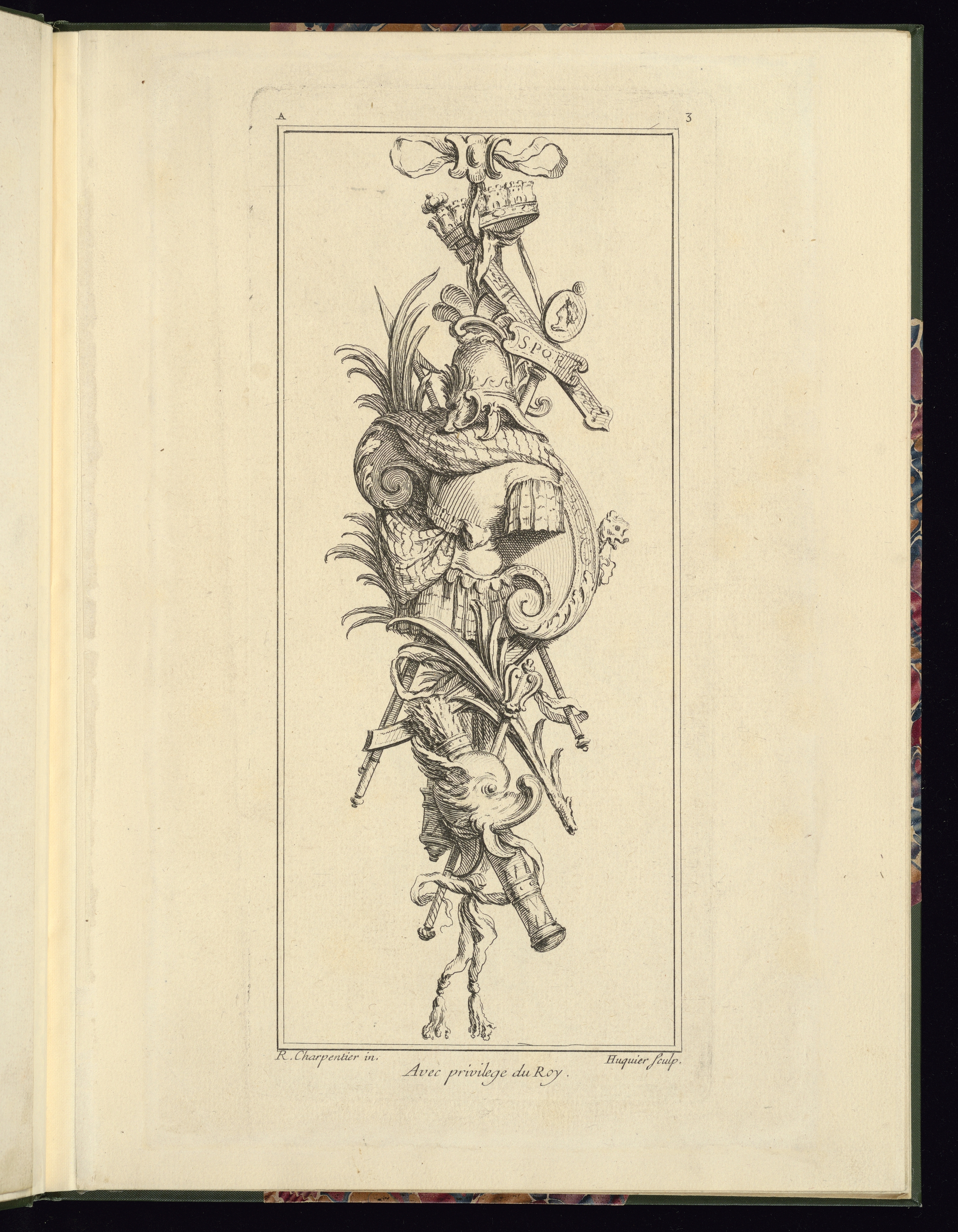 Lettered in plate upper left: A; numbered upper right: 3; lettered lower center: Avec privilege du Roy