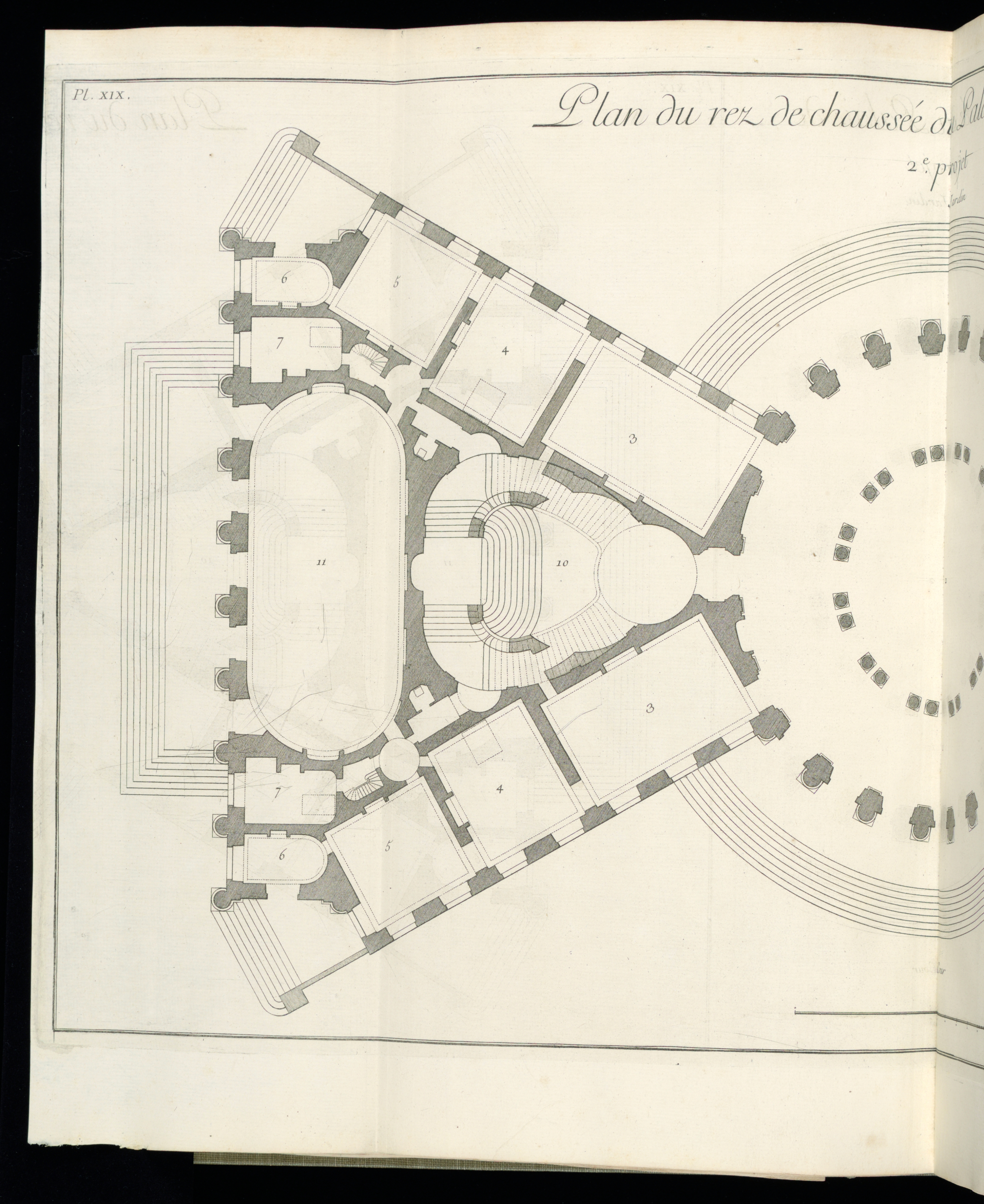 This is a Bound print. It was designed by Germain Boffrand and published by Guillaume Cavalier Père and engraved by Jacques-François Blondel and Pierre François Tardieu and collaborator: François Boucher. It is dated 1745 and we acquired it in 1920. It is a part of the Drawings, Prints, and Graphic Design department.
