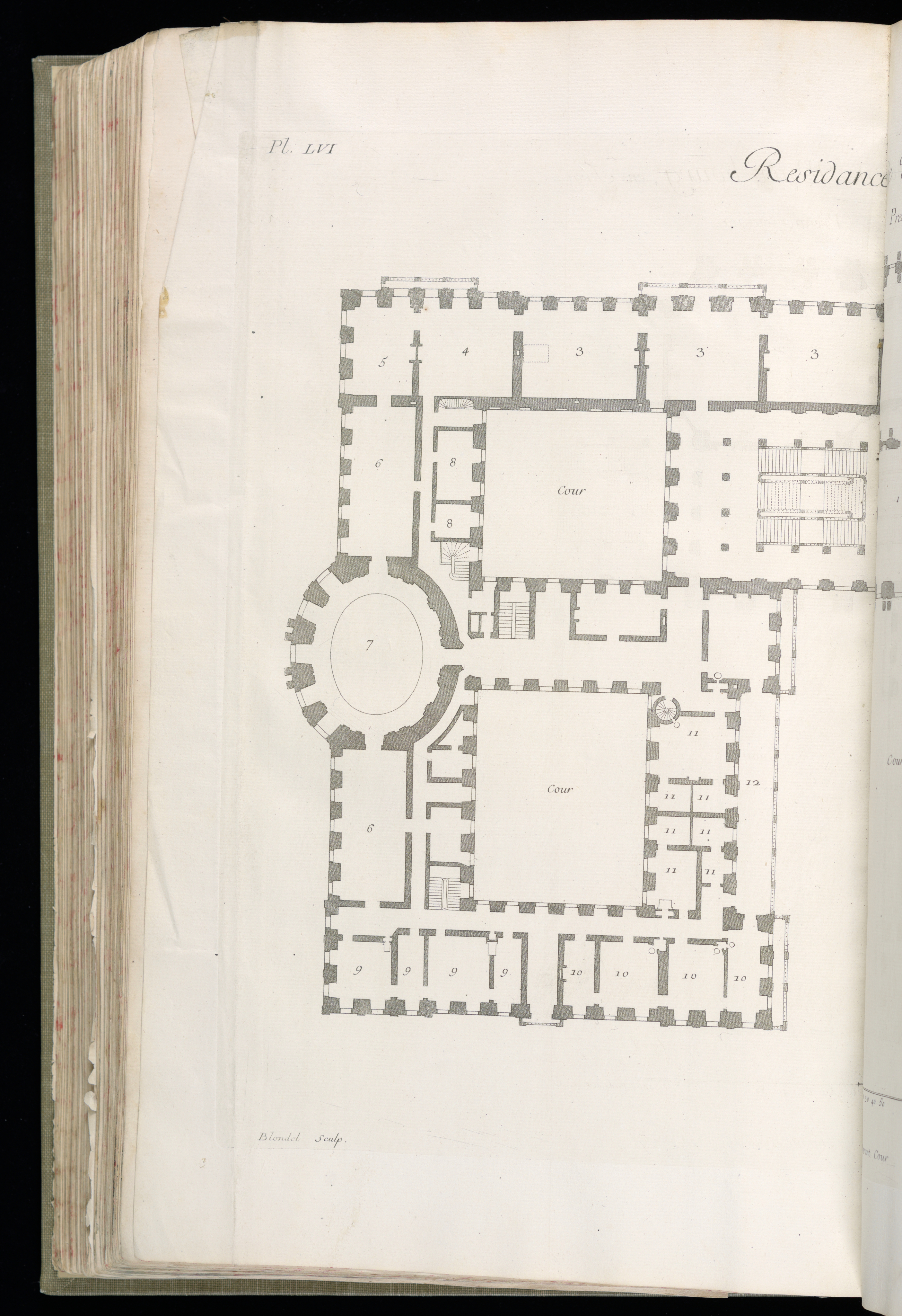 This is a Bound print. It was designed by Germain Boffrand and published by Guillaume Cavalier Père and engraved by Jacques-François Blondel and Pierre François Tardieu and collaborator: François Boucher. It is dated 1745 and we acquired it in 1920. It is a part of the Drawings, Prints, and Graphic Design department.