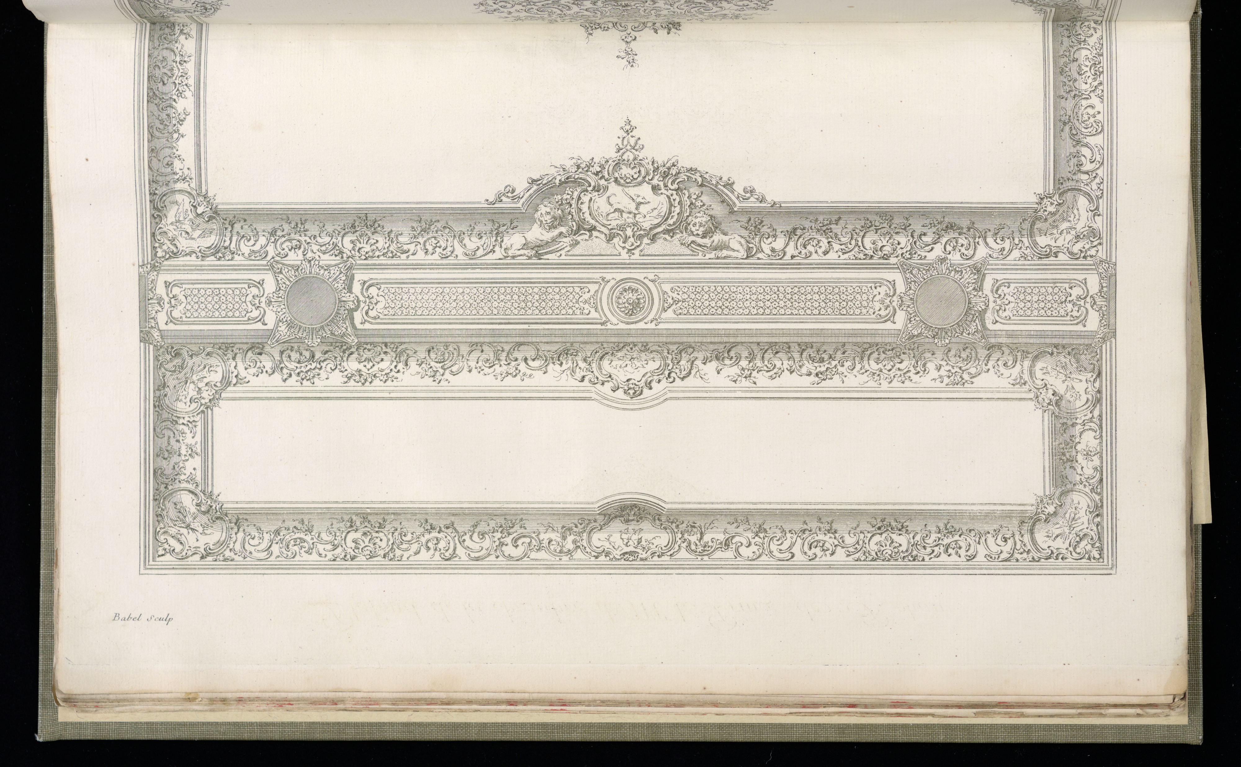 This is a Bound print. It was designed by Germain Boffrand and published by Guillaume Cavalier Père and engraved by Jacques-François Blondel and Pierre François Tardieu and collaborator: François Boucher. It is dated 1745 and we acquired it in 1920. It is a part of the Drawings, Prints, and Graphic Design department.