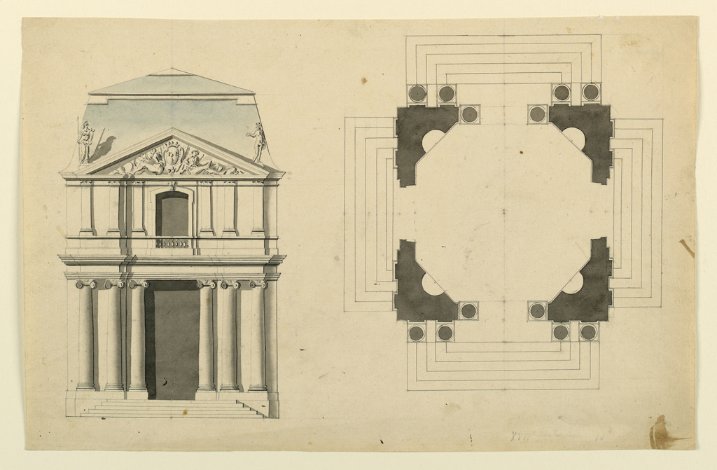 Drawing, Project for a square pavilion; France; Purchased for the Museum by the Advisory Council; 1925-1-227