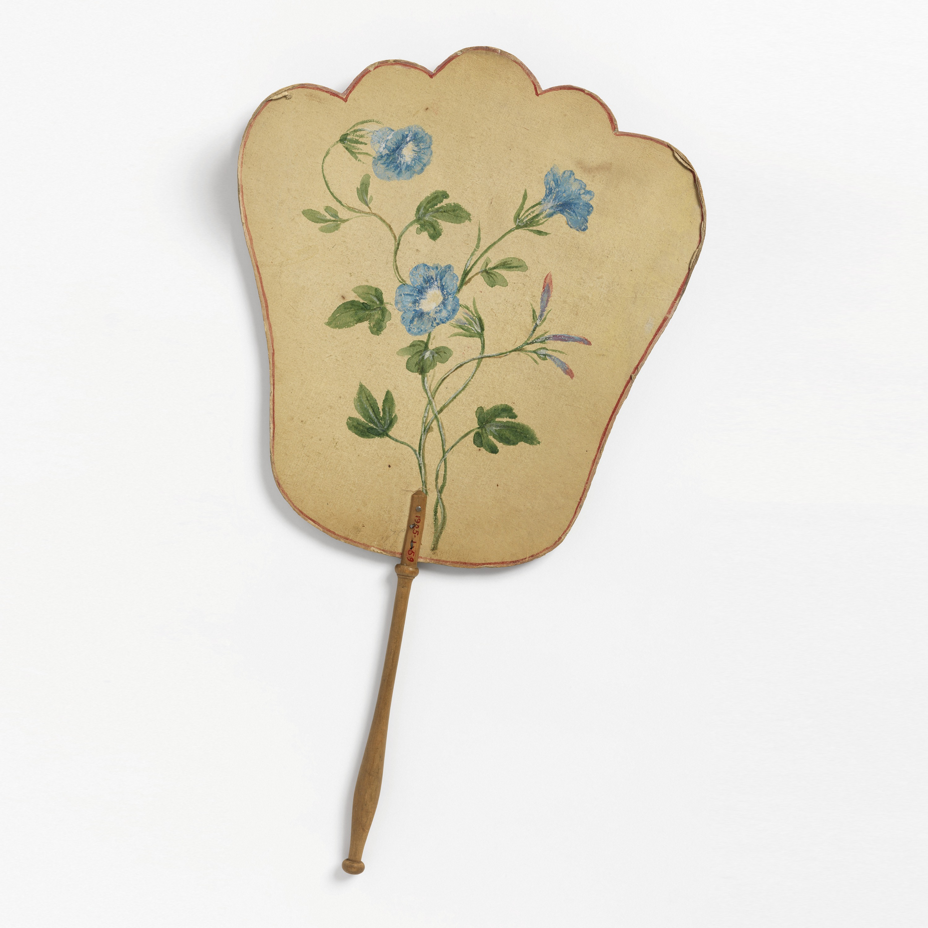 This is a Handscreen. It is dated mid- 18th century and we acquired it in 1925. Its medium is painted paper leaf, turned wood handle. It is a part of the Textiles department.