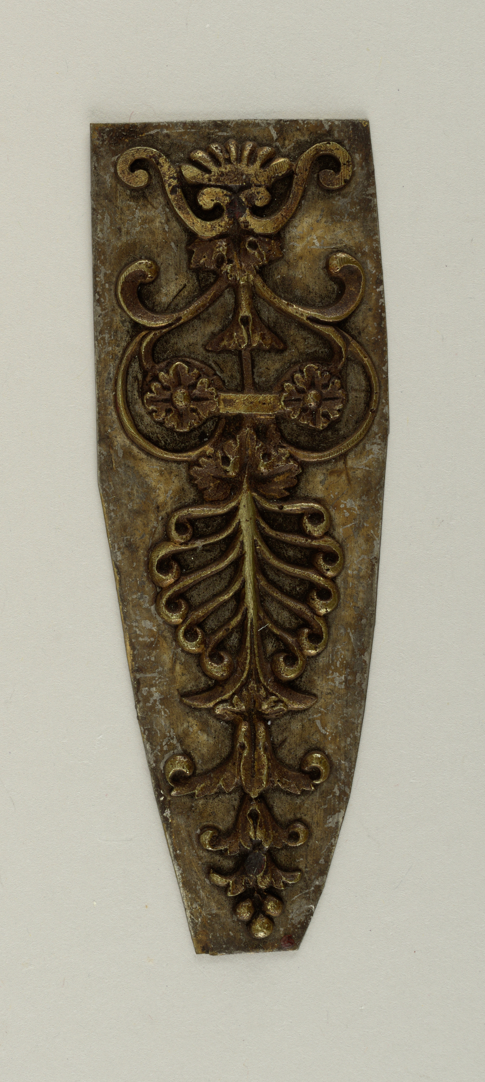 Mount; partially silvered brass; H x W x D: 10.5 x 3.8 x 0.3 cm (4 1/8 x 1 1/2 x 1/8 in.); Gift of Mary A. Peoli; 1925-3-23