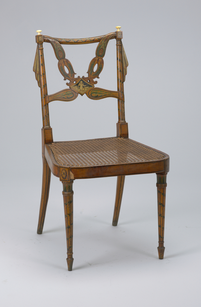 Side Chair (England); satinwood with painted decoration, ivory, caned seat; H x W x D: 84 x 46 x 48 cm (33 1/16 x 18 1/8 x 18 7/8 in.); Bequest of Mrs. John Innes Kane; 1926-22-65-a