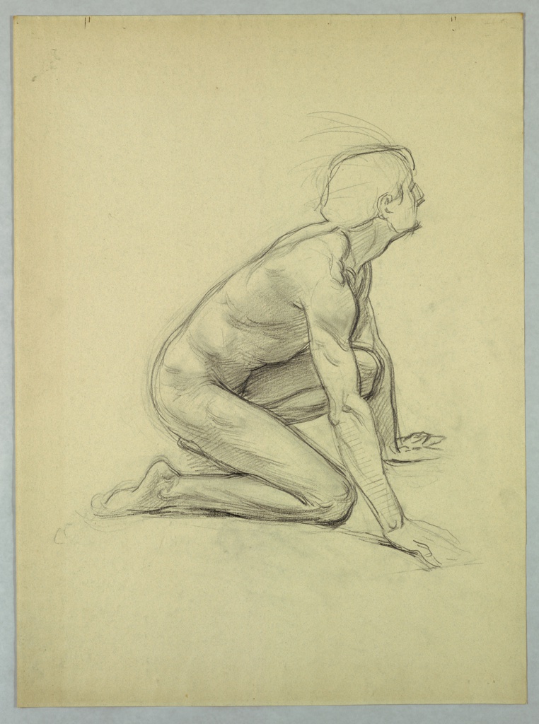 Drawing, Study of a Kneeling Man; Raimundo de Madrazo ((Spanish, 1841–1920)); SPAIN & U.S.; graphite on paper; 1927-3-347