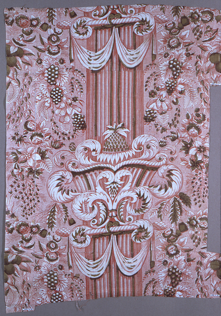 This is a Fragment. We acquired it in 1928. Its medium is cotton and its technique is printed by relief and engraved roller, glazed. It is a part of the Textiles department.