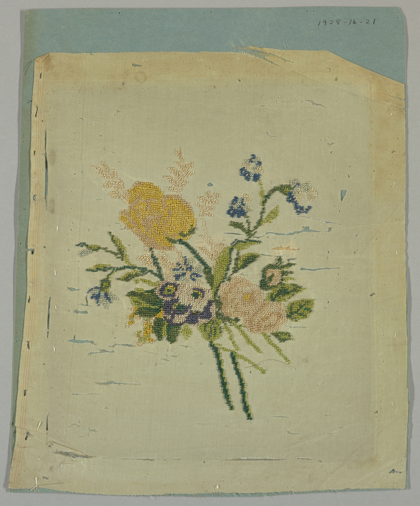 Textile; embroidery, silk on silk; Gift of Eleanor and Sarah Hewitt; 1928-16-21