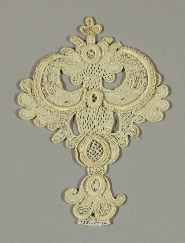 This is a Ornament. It is dated 17th century and we acquired it in 1931. Its medium is linen and its technique is mid to late 17th c raised needle lace. It is a part of the Textiles department.