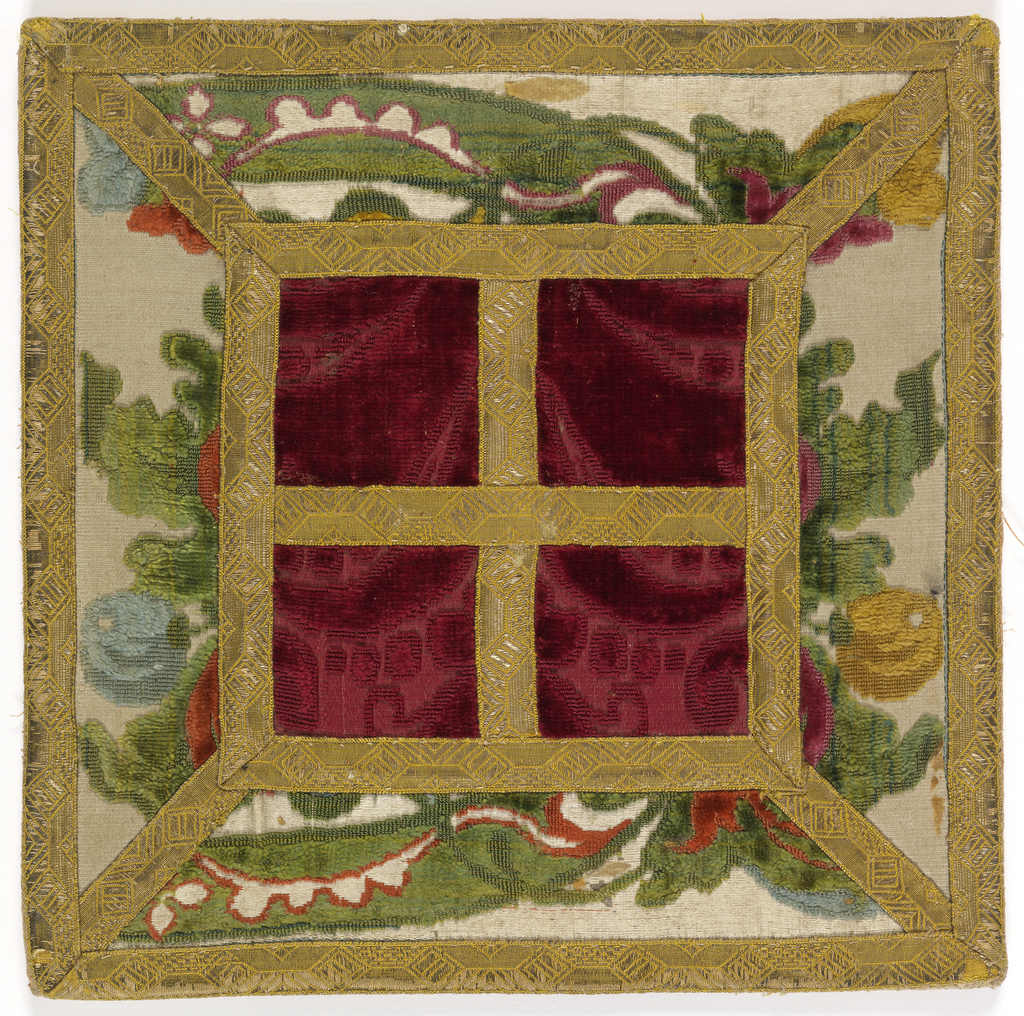 Burse (Italy); silk, linen, metallic trim; H x W: 26.6 x 26.8 cm (10 1/2 x 10 9/16 in.); Gift of Eleanor and Sarah Hewitt, from the textile collection of Mrs. Abram Stevens Hewitt; 1931-4-85