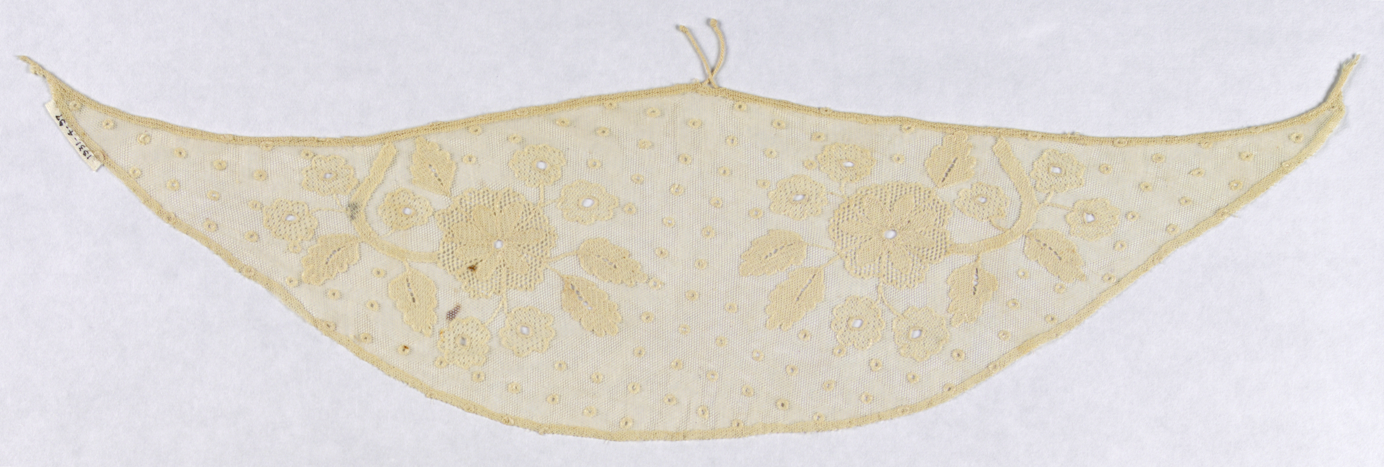 This is a Cap border. It is dated ca. 1820 and we acquired it in 1931. Its technique is needlework on net. It is a part of the Textiles department.