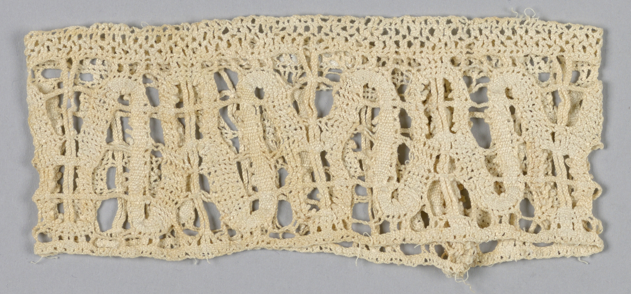 This is a Bands. It is dated 17th century and we acquired it in 1931. Its medium is linen and its technique is bobbin lace, continuous tape with bars added. It is a part of the Textiles department.