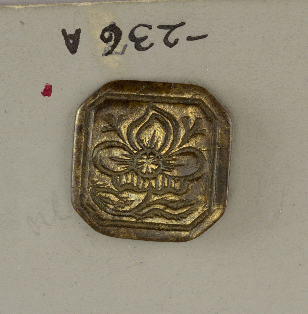 This is a Button. It is dated 19th century and we acquired it in 1931. Its medium is copper. It is a part of the Product Design and Decorative Arts department.