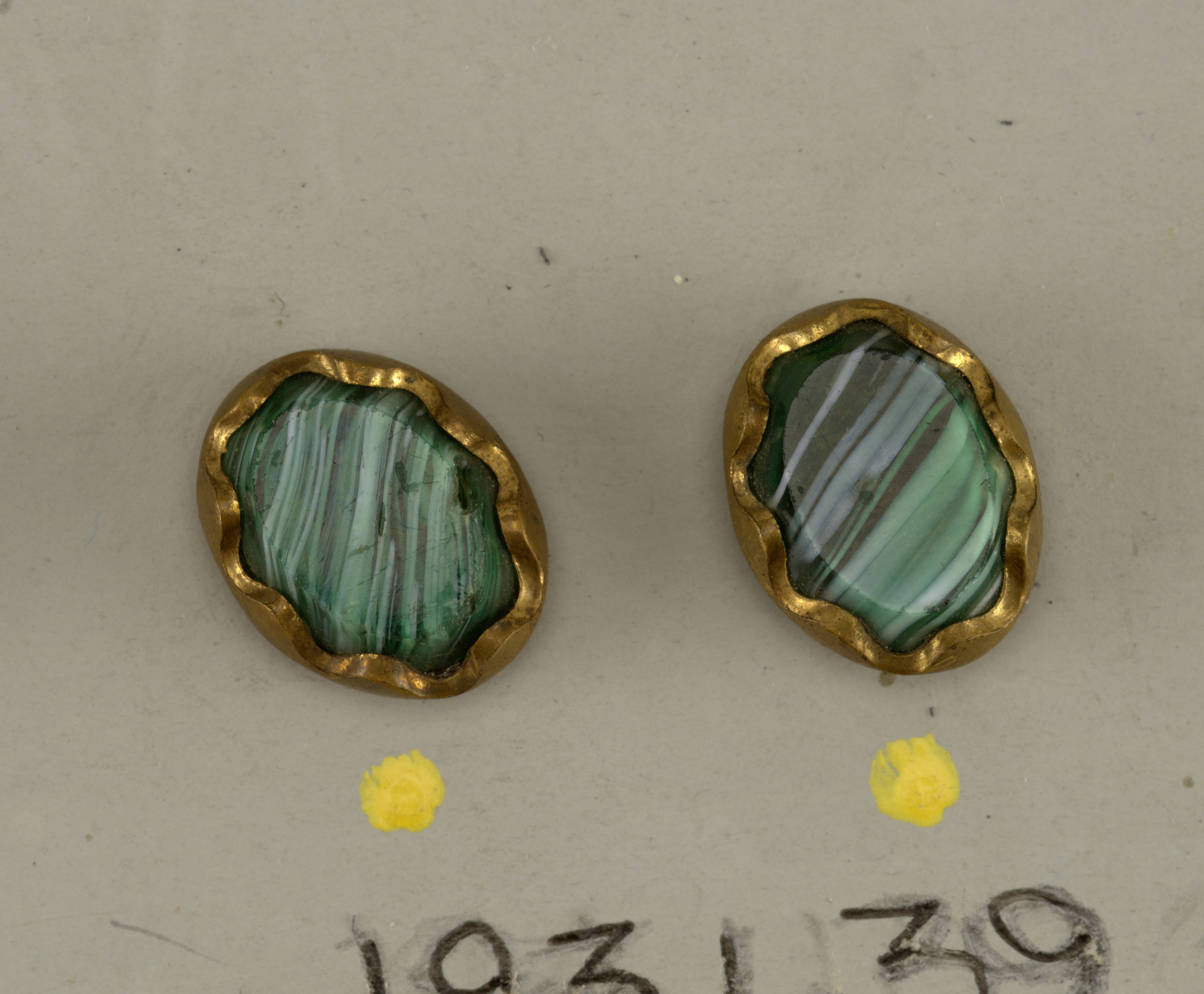 Buttons (France); glass and brass; Gift of Eleanor and Sarah Hewitt; 1931-59-362-a/e