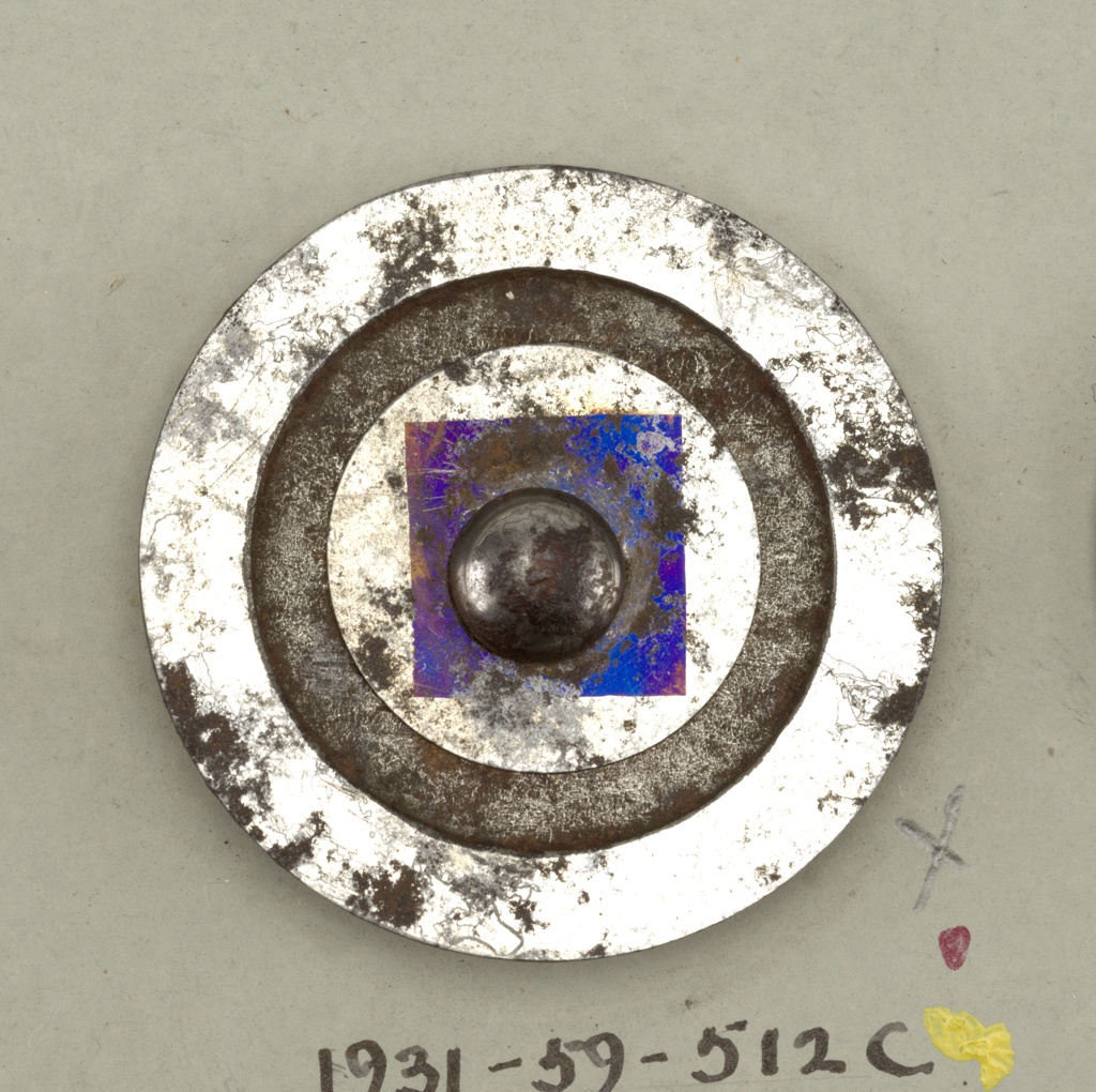 This is a buttons. It is dated 19th century and we acquired it in 1931. Its medium is steel. It is a part of the Product Design and Decorative Arts department.