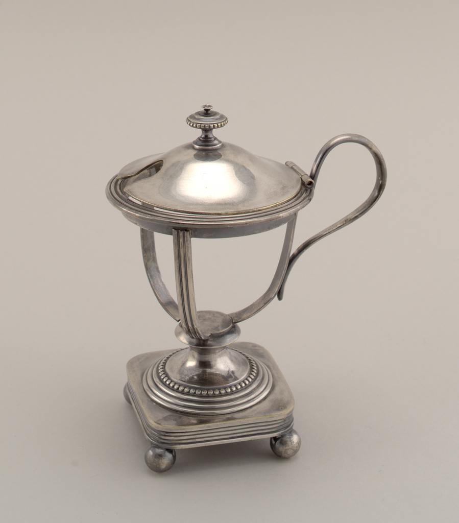 Stand for a Mustard Pot Stand; Made by Charles Christofle; silver plated, metal; H x W x D: 11.5 × 9.5 × 6.7 cm (4 1/2 × 3 3/4 × 2 5/8 in.); Gift of Sarah Cooper Hewitt; 1931-61-31