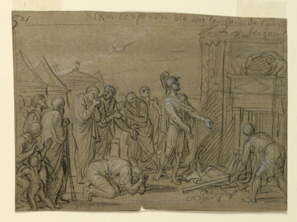 Drawing, The Bearing of the Ark of the Convenant; France; black and red crayon, white heightening on brown paper; 13.8 × 19 cm (5 7/16 × 7 1/2 in.); Gift of Eleanor and Sarah Hewitt; 1931-64-109