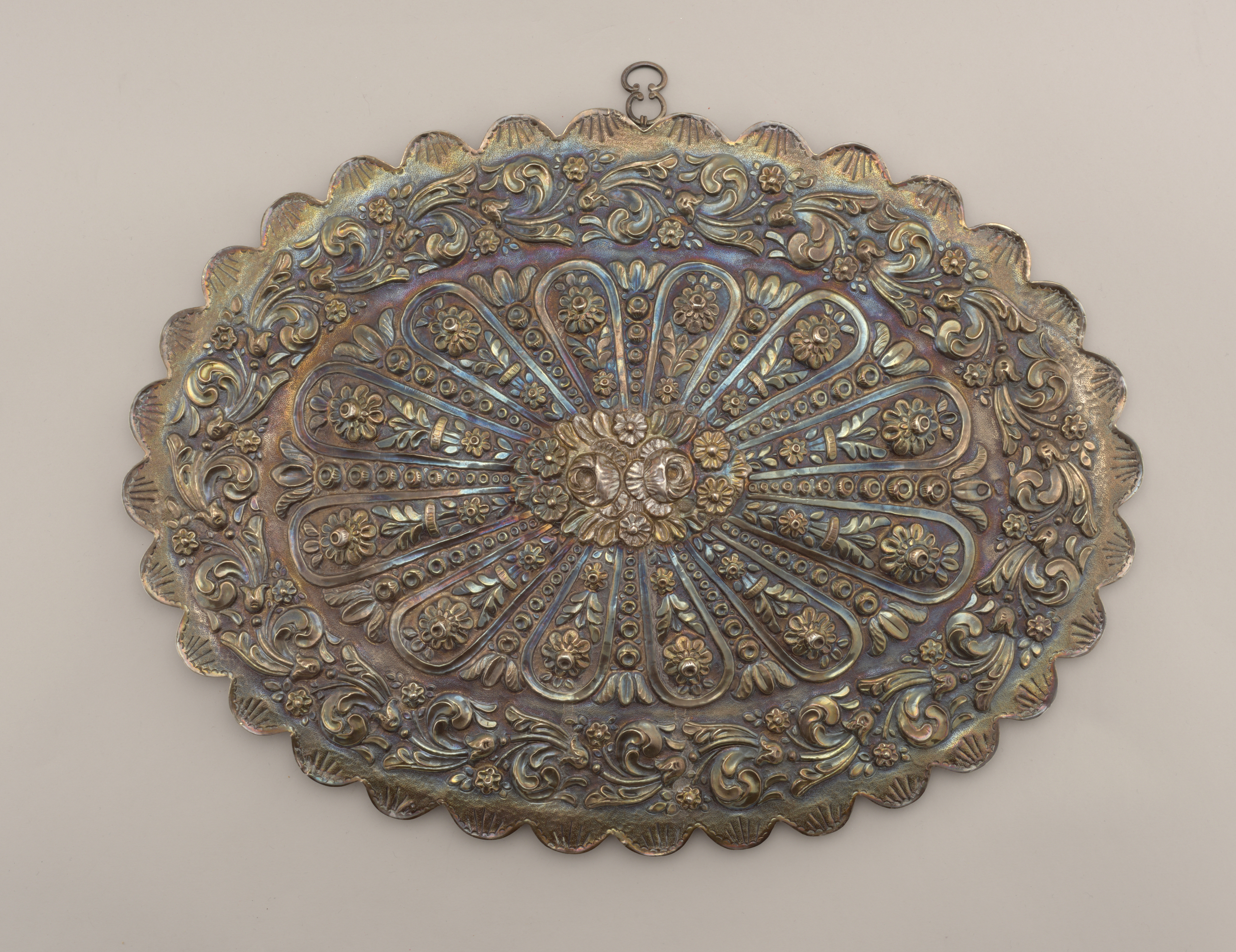 This mirror brings up questions of function, as most mirrors we experience on a daily basis function as a reflective surface for the purpose of examining oneself. Mirrors also function decoratively, which could arguably be this mirror’s primary concern. Although some schematic elements typical of design of the Near East arrange the space on the back of the mirror, there are rococo-like vegetal arrangements showing a clear western influence. Most examples of mirrors in the collection display their ornament through their frame, and some through engraving on mirrored glass, which makes the Turkish mirror stand out.