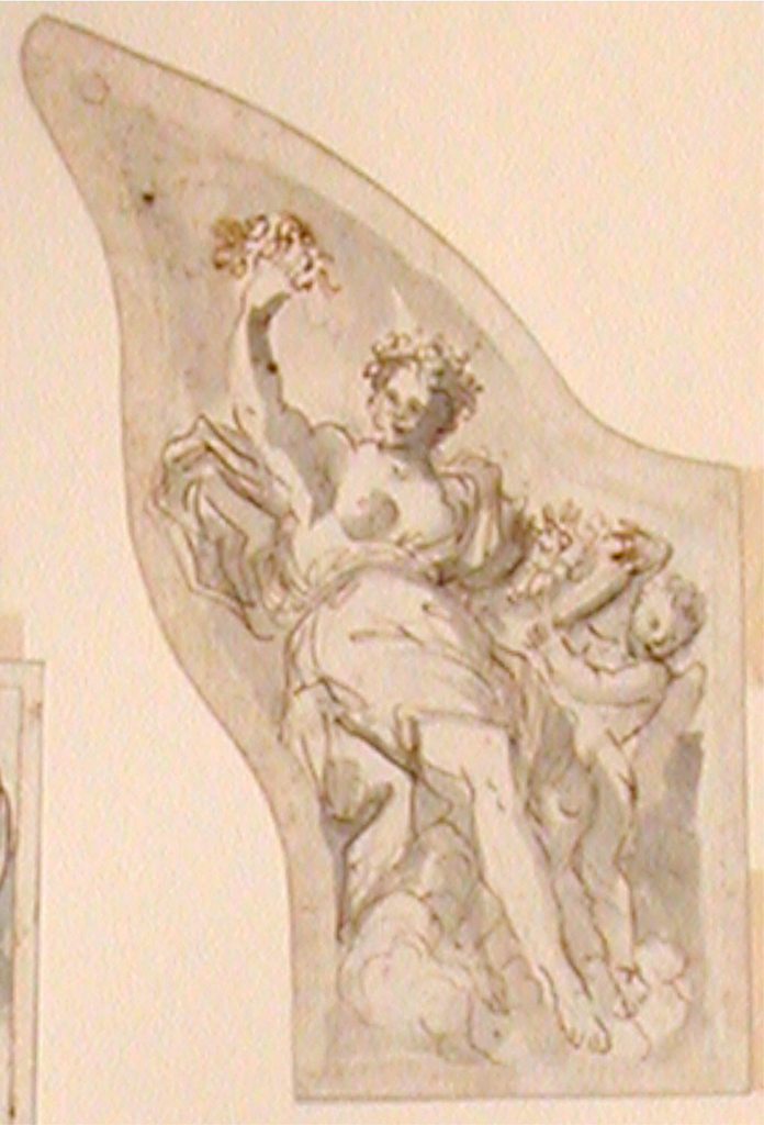 Drawing, Decoration of a lateral panel of a coach; Italy; brush and gray watercolor, pen and ink, black chalk on paper.; 9.6 x 16.8 cm (3 3/4 x 6 5/8 in.); Gift of Eleanor and Sarah Hewitt from the collection of Mrs. Abram S. Hewitt; 1931-70-23