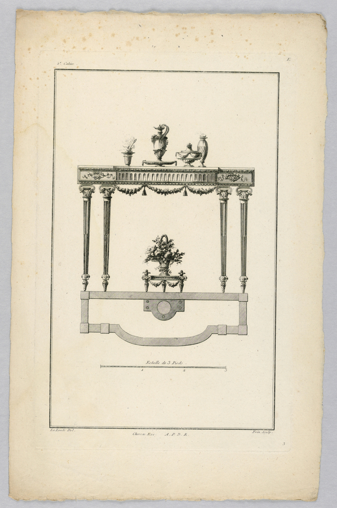 Print, Design for Table; Print Maker: Augustin Nicolas Foin (French, 1726–c. 1759); After Richard de Lalonde (French, active 1780–96); engraving on paper; Gift of Eleanor and Sarah Hewitt; 1931-94-503