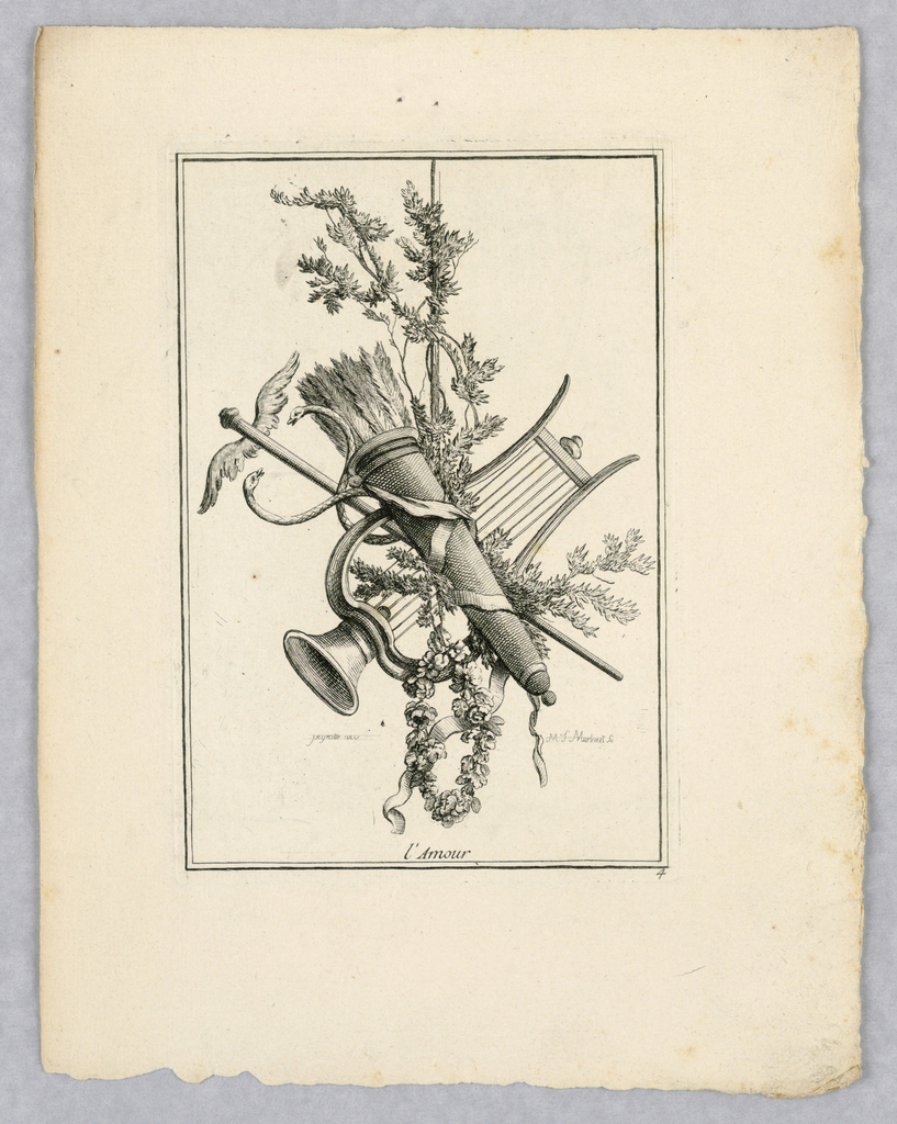 Print, Trophy; Designed by Alexis Peyrotte (French, 1699–1769); Print Maker: Marie Therese Martinet (French, 1731 – 1800?); etching on paper; Gift of Eleanor and Sarah Hewitt; 1931-94-610