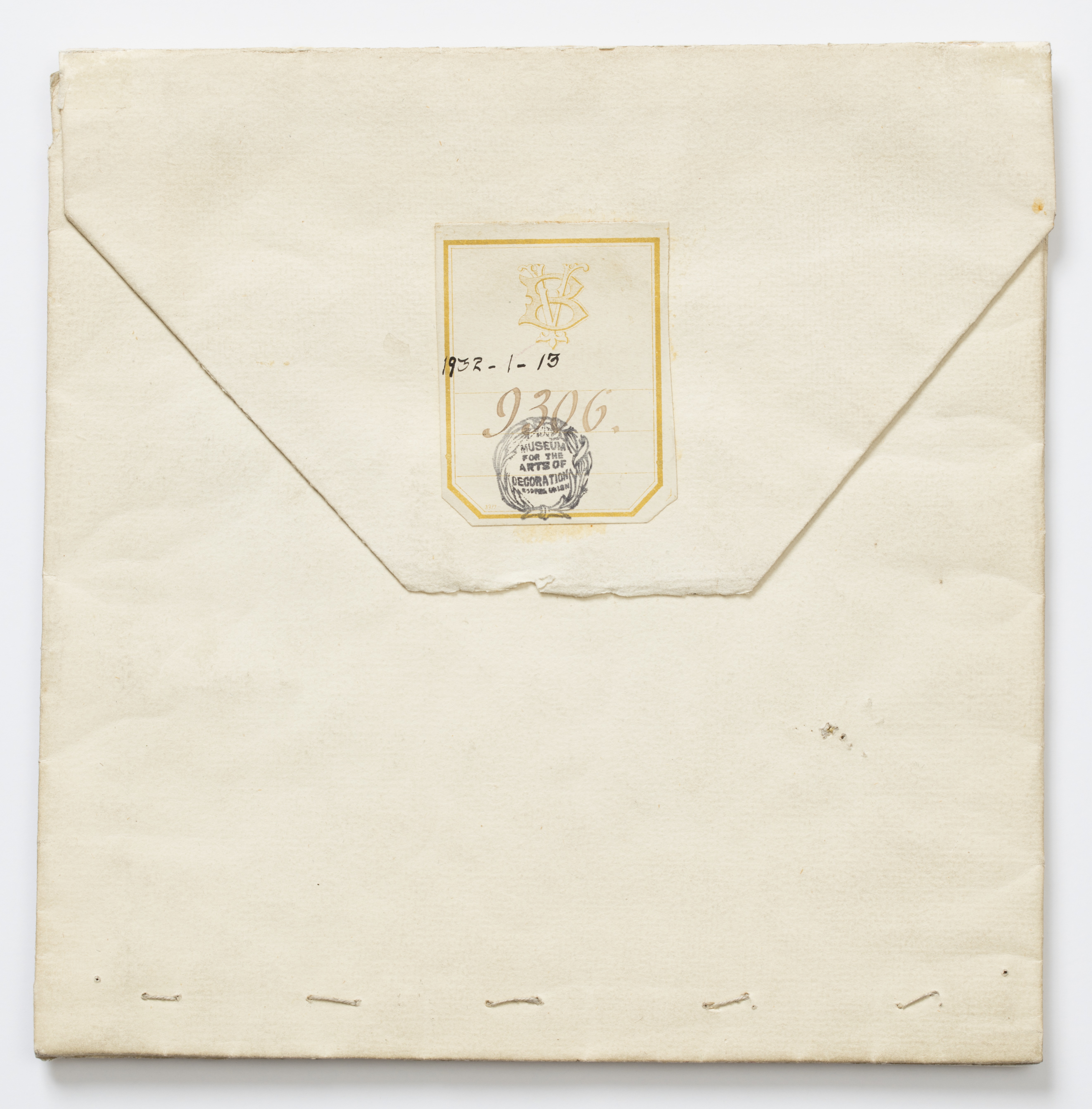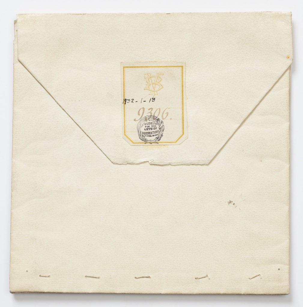 Embroidery Sample (France); silk, metallic thread, glass and paper; H x W: 18 x 18 cm (7 1/16 x 7 1/16 in.); Museum purchase from Au Panier Fleuri Fund; 1932-1-13