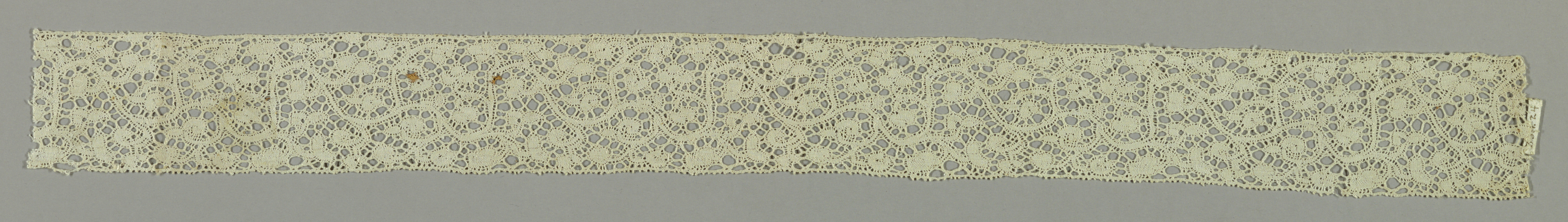 This is a Band. It is dated 17th–18th century and we acquired it in 1933. Its medium is linen and its technique is bobbin lace, binche style with no grounds. It is a part of the Textiles department.