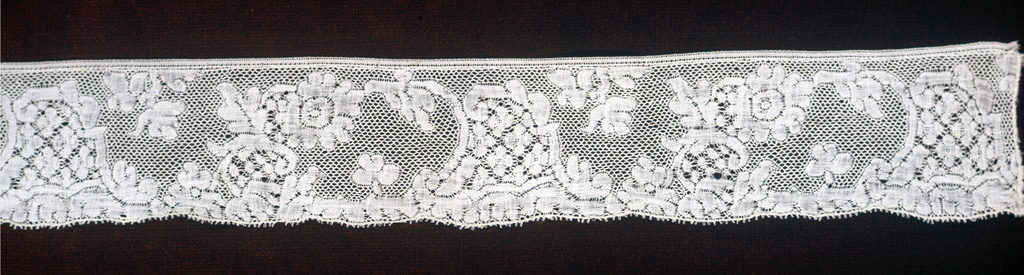 This is a Edge. It is dated 18th century and we acquired it in 1933. Its medium is linen and its technique is bobbin lace, valencienne ground. It is a part of the Textiles department.