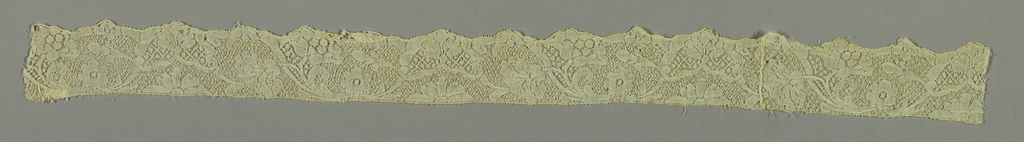 This is a Border. It is dated 17th–18th century and we acquired it in 1933. Its medium is linen and its technique is bobbin lace, binche style with snowflake ground. It is a part of the Textiles department.