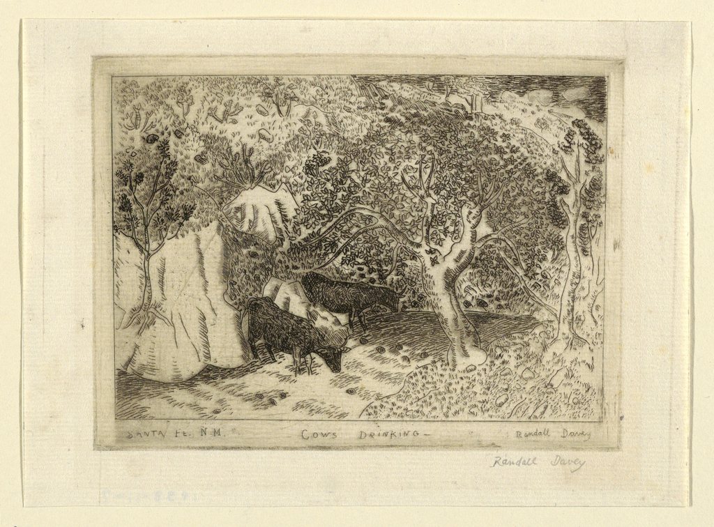 Inscribed in plate, lower center: Cows Drinking -; in plate, lower left: Santa Fe. N.M.
