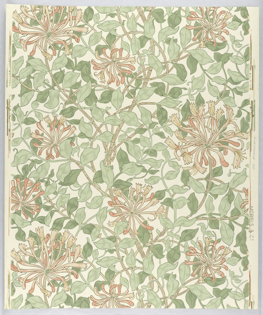 Sidewall, Honeysuckle; Designed by May Morris (British, 1862–1938); Manufactured by Arthur Sanderson (1829), Arthur Sanderson & Sons, Ltd. (United Kingdom); Made for Morris & Co. (United Kingdom); England; block-printed paper; 69 x 57.5 cm (27 3/16 x 22 5/8 in.); Gift of Cowtan & Tout, Inc.; 1935-23-13
