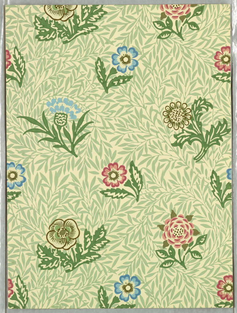 This is a Sidewall. It was manufactured by William Morris. It is dated 1934 and we acquired it in 1935. Its medium is block-printed on paper. It is a part of the Wallcoverings department.