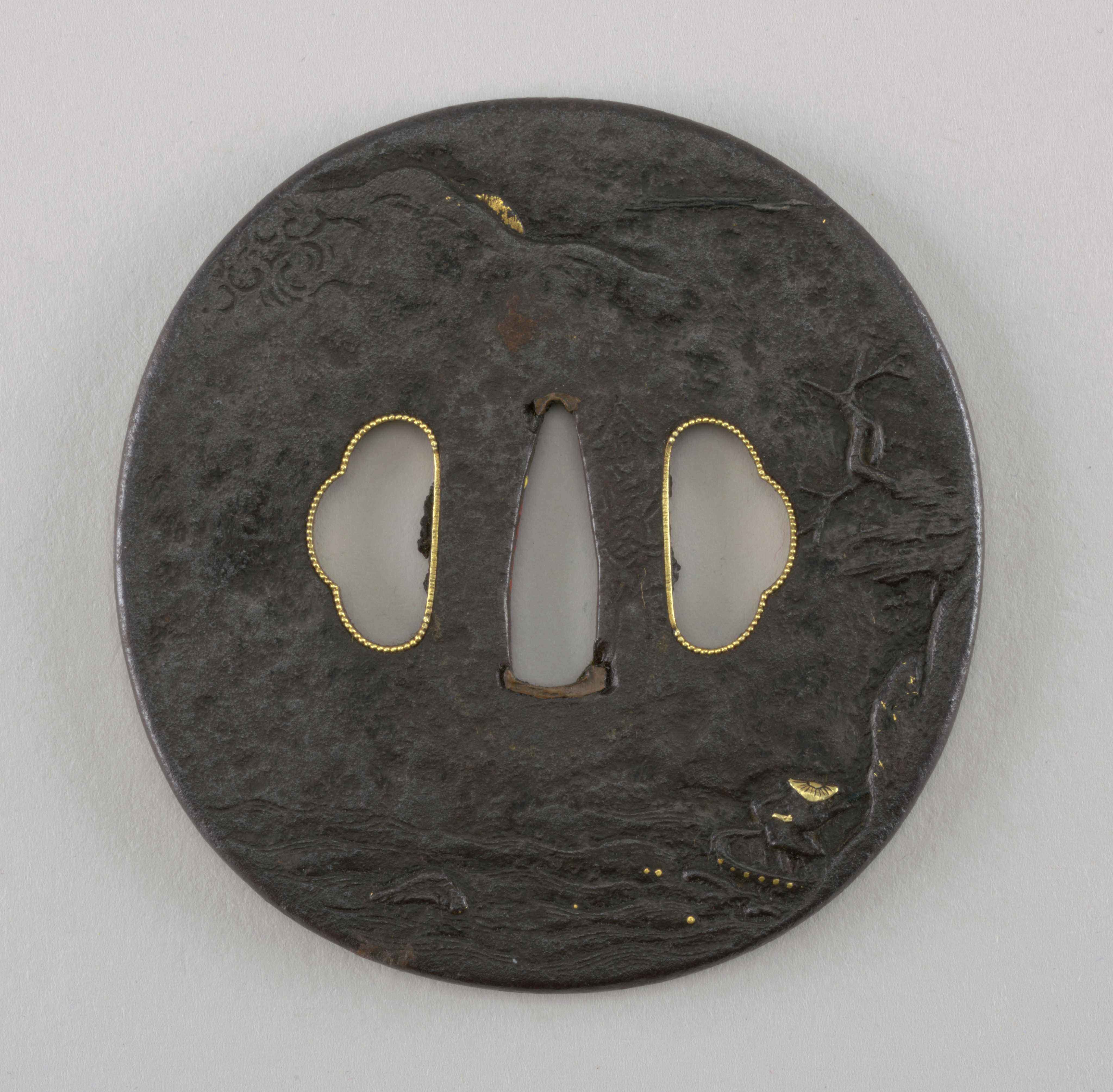 This is a Tsuba. It is dated 1688–1703 and we acquired it in 1936. Its medium is material: tetsu surface: deku-boku shape: naga maru. It is a part of the Product Design and Decorative Arts department.