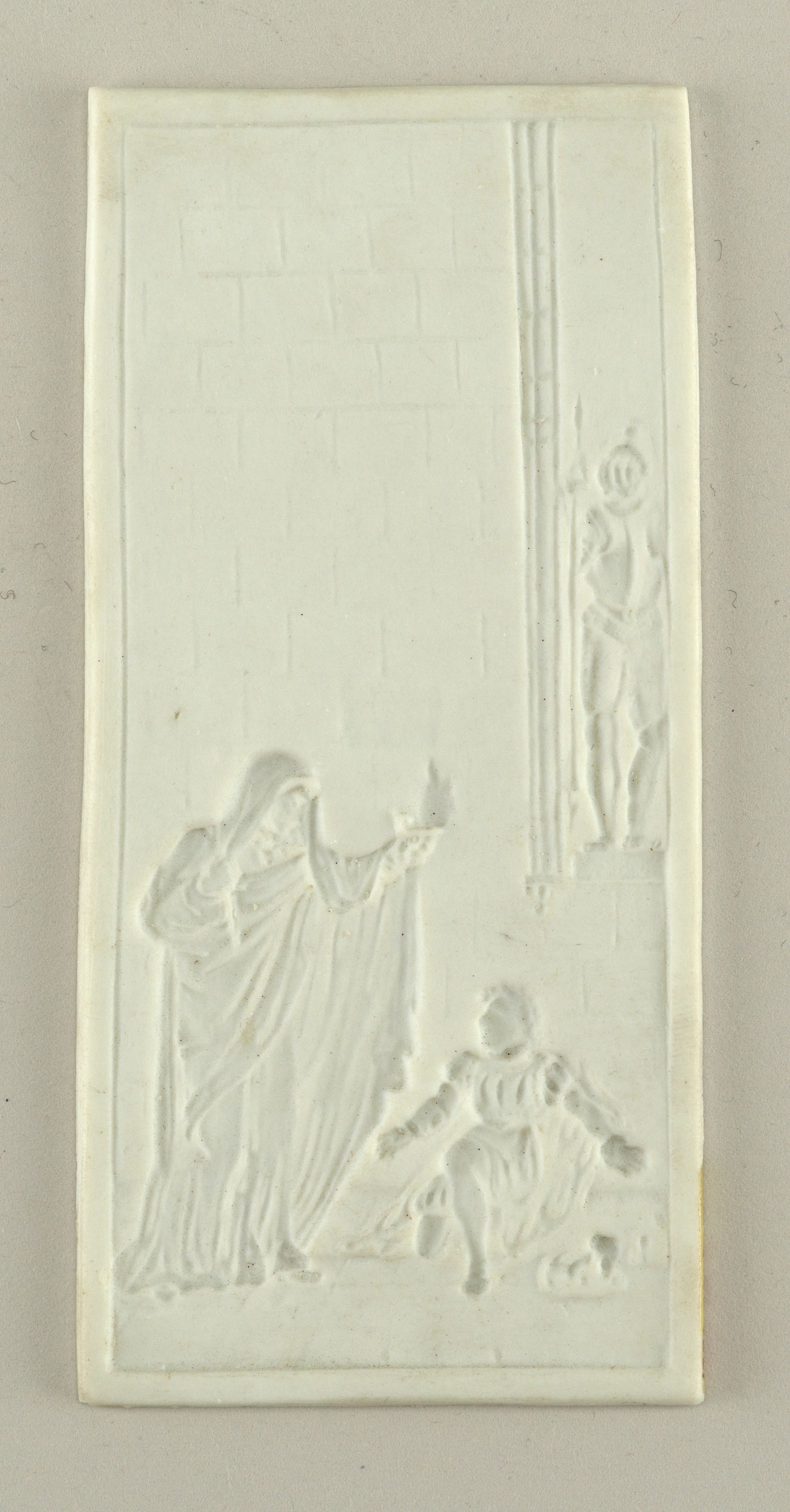 Lithophane of David and King Saul Lithophane; biscuit; H x W x D: 11.8 × 5.6 × 0.3 cm (4 5/8 × 2 3/16 × 1/8 in.); 1936-58-8