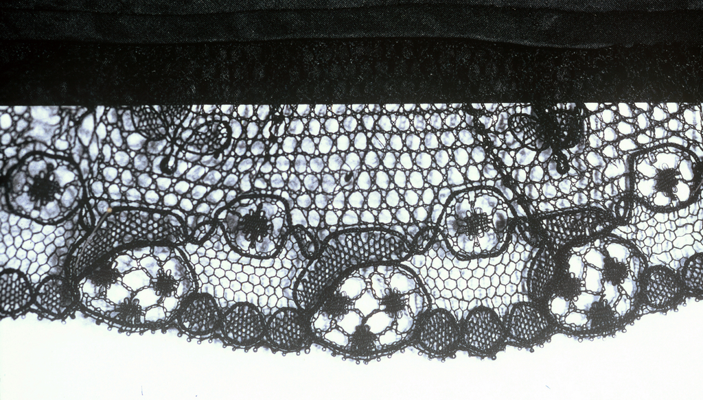 This is a Cuff. It is dated ca. 1870 and we acquired it in 1937. Its medium is silk and its technique is bobbin lace, chantilly style. It is a part of the Textiles department.