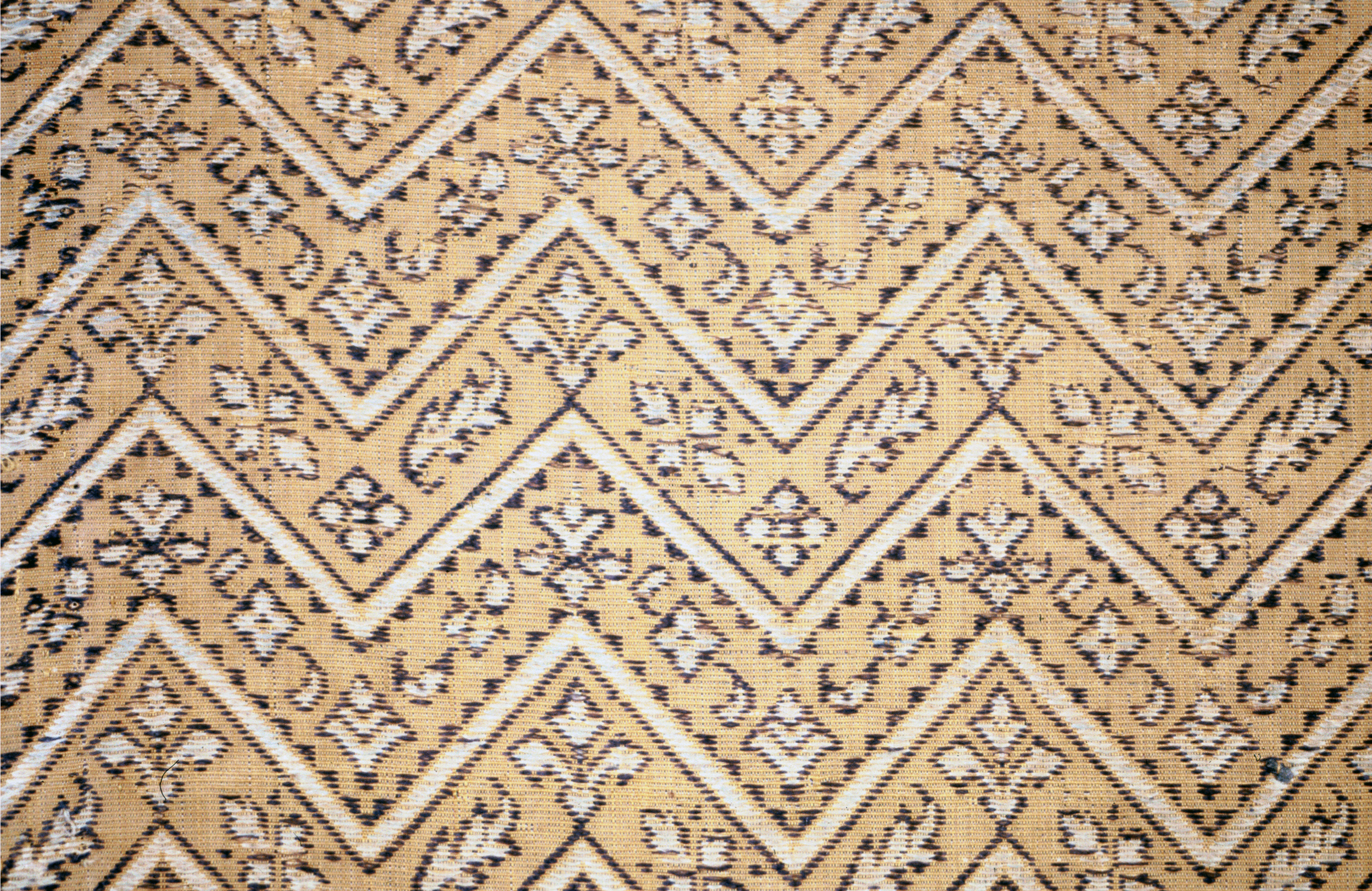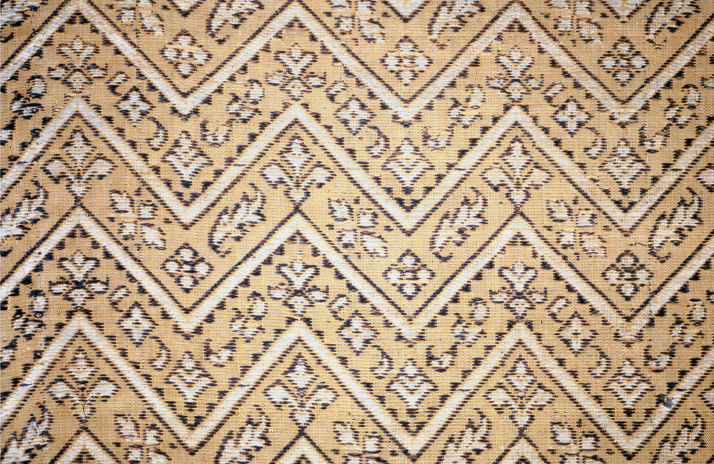This is a Textile. It is dated 17th century and we acquired it in 1937. Its medium is silk and linen and its technique is stamped plain weave with extra wefts of purple and white silk. It is a part of the Textiles department.