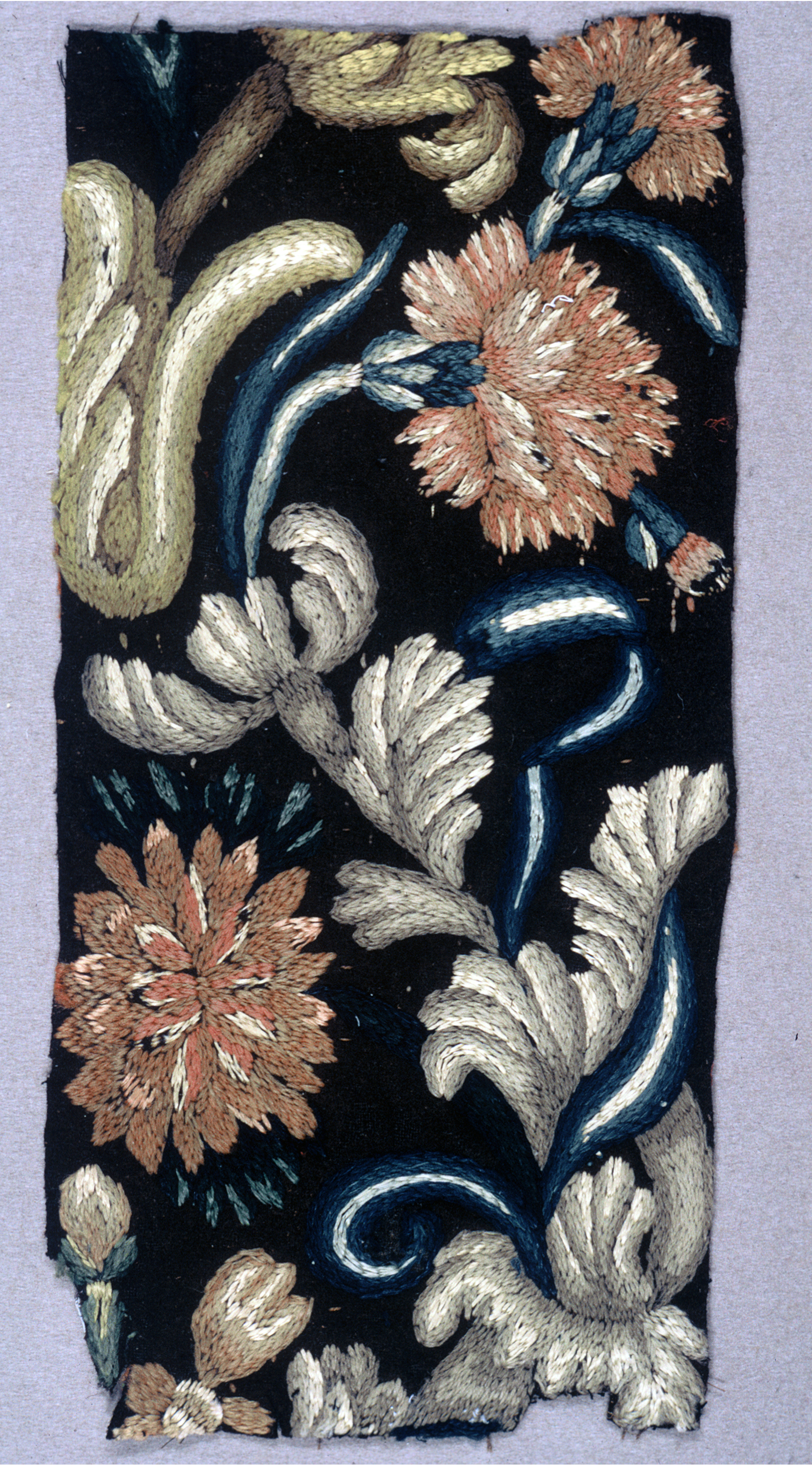 This is a Textile. It is dated 17th century and we acquired it in 1937. Its medium is wool and its technique is split stitch embroidery. It is a part of the Textiles department.