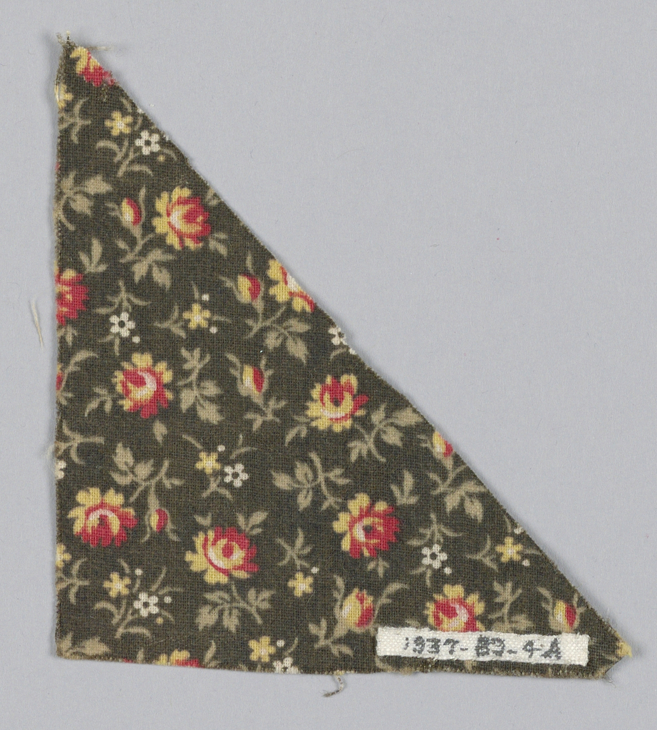 This is a Fragments. It is dated ca. 1850 and we acquired it in 1937. Its medium is cotton and its technique is printed on plain weave. It is a part of the Textiles department.