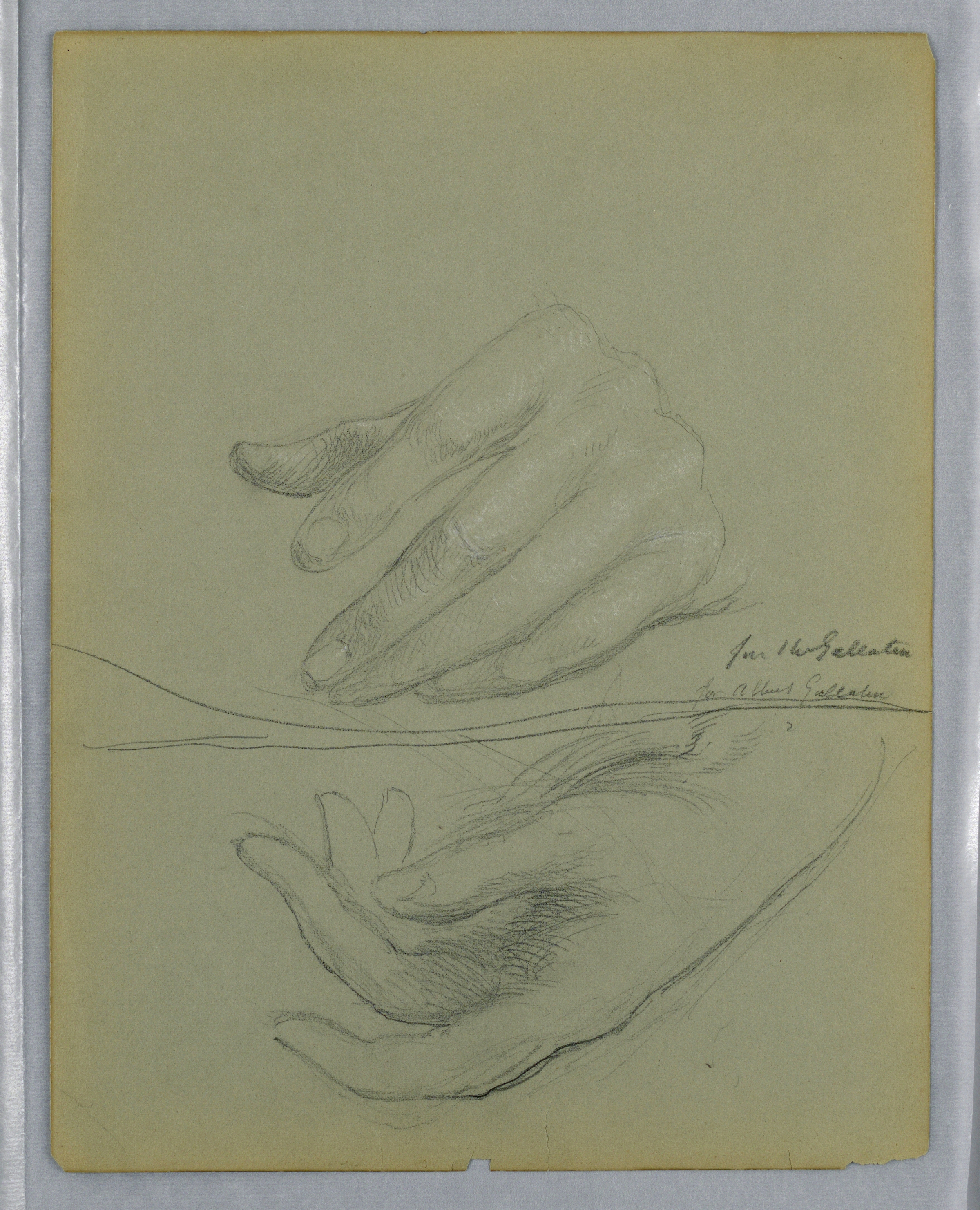 <ref name=CH>{{cite web |url=https://www-6.collection.cooperhewitt.org/objects/18346475/ |title=Drawing, Albert Gallatin, Two Left Hand Studies |author=Cooper Hewitt, Smithsonian Design Museum |accessdate=19 December 2025 |publisher=Smithsonian Institution}}</ref>