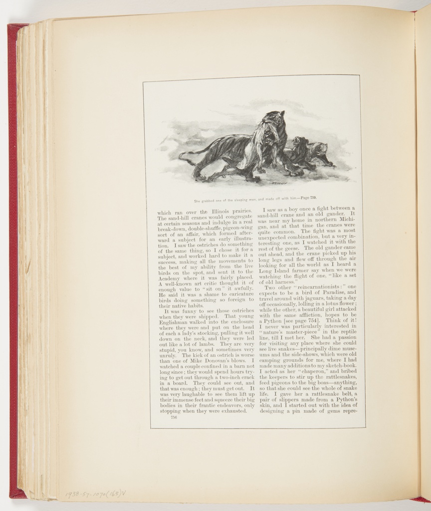Ephemera, Excerpt from "An Artist Among Animals" from Scribner's Magazine (XIV, No. 6, December 1893, p. 755, 756); Collected by Dr. Dudley Tenney (New York City); Published by Charles Scribner's Sons; Illustrated by Frederick Stuart Church (American, 1842–1924); USA; printed in black ink on paper; 30.2 × 23.5 cm (11 7/8 × 9 1/4 in.); Bequest of Erskine Hewitt; 1938-57-1070-165