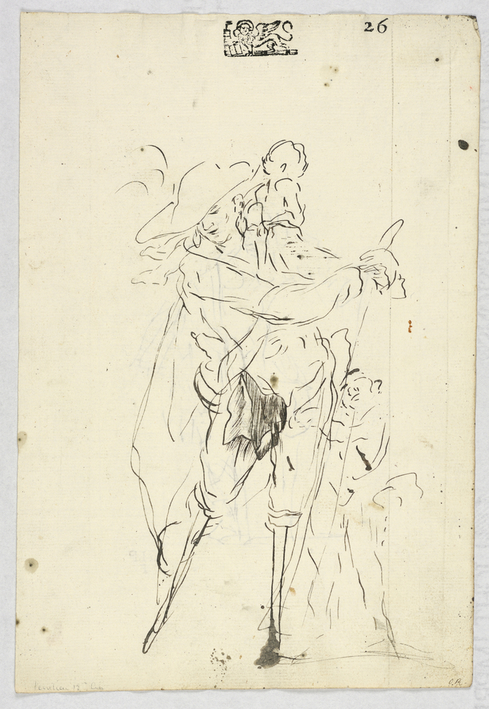 Drawing, Sketches of Peg-Legged Men; Style of Giovanni Antonio Pellegrini (Italian, 1675–1741); Italy; pen and ink; H x W: 31.4 × 21.4 cm (12 3/8 × 8 7/16 in.); Bequest of Erskine Hewitt; 1938-57-1431
