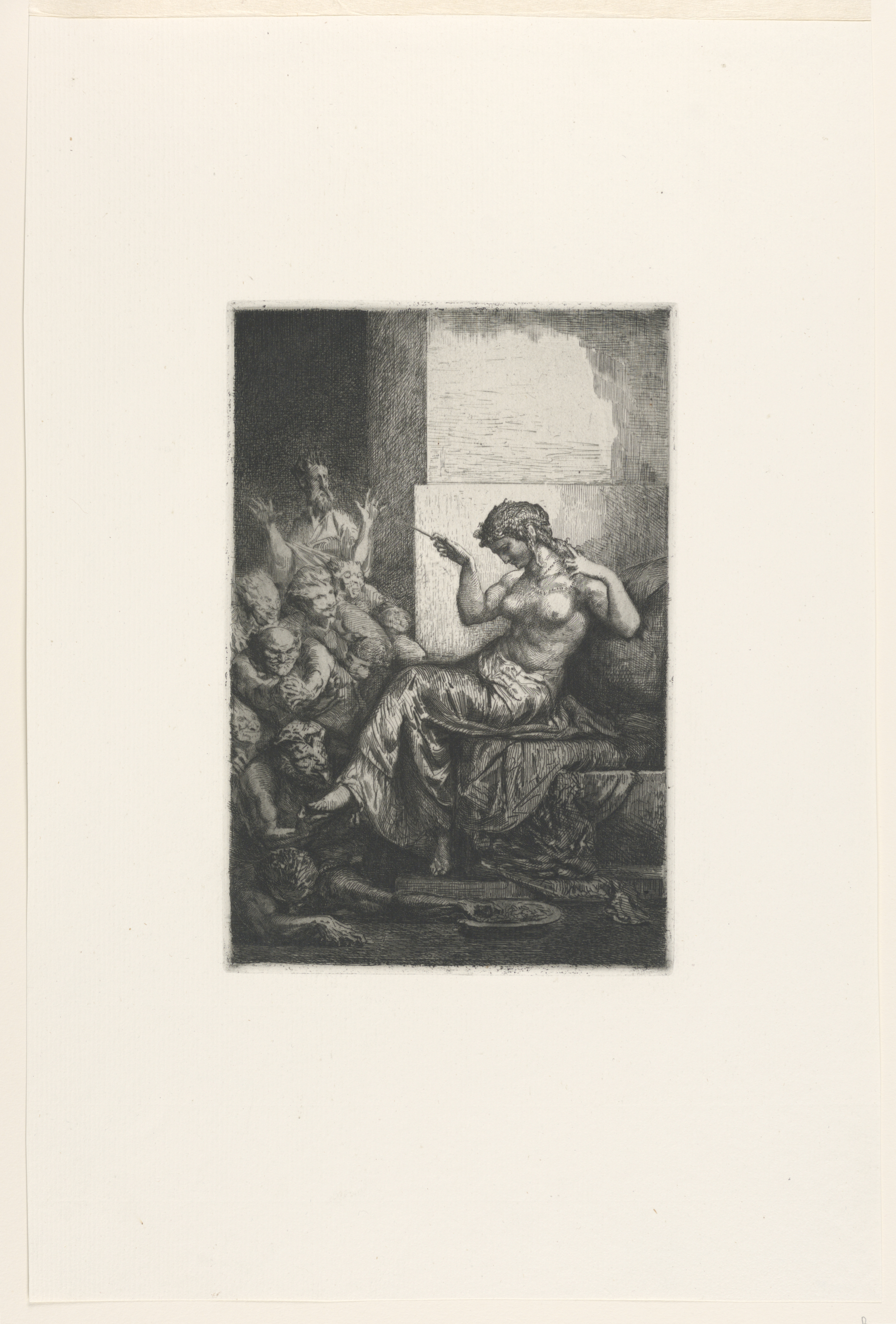 This is a Print. It was print maker: François-Nicolas Chifflart. It is dated ca. 1860 and we acquired it in 1938. Its medium is etching in black ink on white paper. It is a part of the Drawings, Prints, and Graphic Design department.